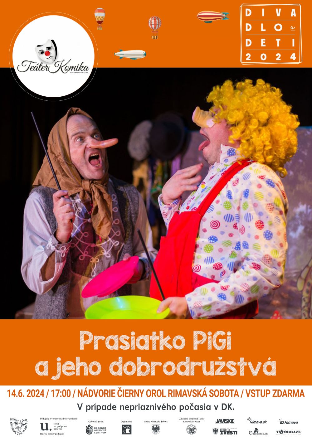 Všetky deti a ich rodičov pozývame v piatok, 14. 6. 2024 o 17.00 hod. na nádvorie Čierny orol na rozprávkovú komédiu o nezištnej pomoci, priateľstve, ale aj o nekončiacej poriadnej zábave. Predstavenie Teatra Komika: PRASIATKO PIGI A JEHO DOBRODRUŽSTVÁ je hosťom festivalu Divadlo a deti 2024, ktoré z verejných zdrojov podporil Fond na podporu umenia. Vstup zdarma.