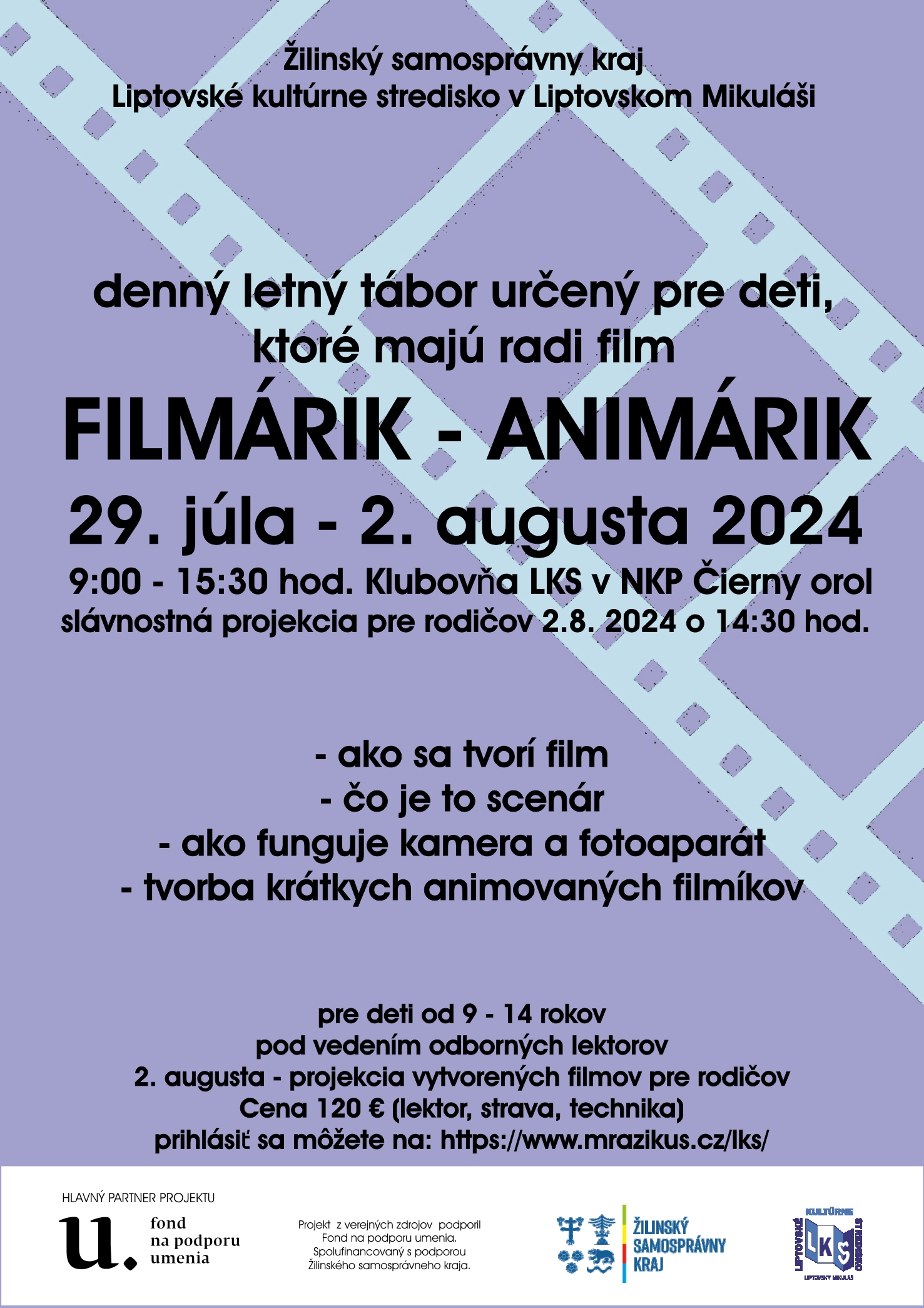 Denný letný tábor určený pre deti, ktoré majú radi animovaný film.