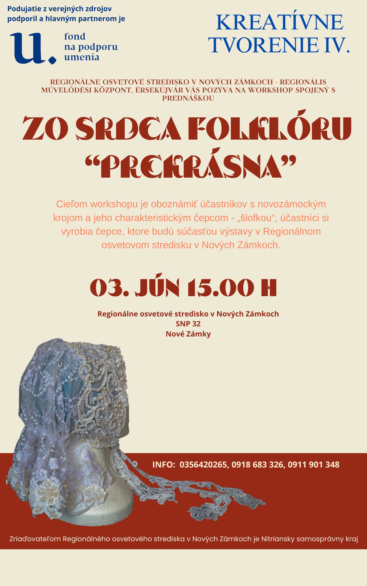 Workshop, kde sa účastníci zoznámia s novozámockým krojom a čepcom „šlofka“, ktorý si vlastnoručne vyrobia.