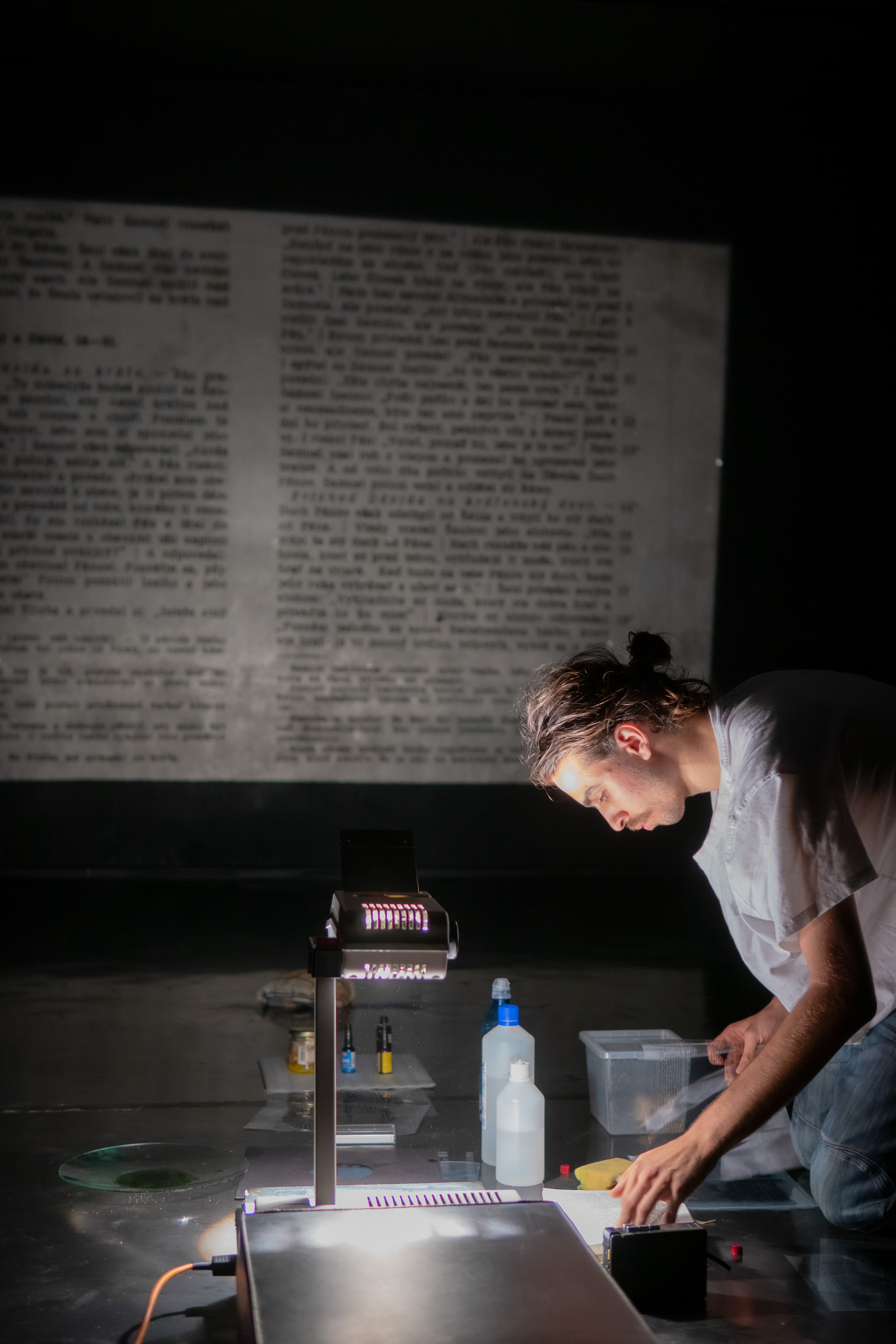 Prezentácia monodrámy Mareka Kováča VRSTVY (pôvodný názov: Vplyv modulárneho pozorovania okom na post audio-vizuálne umenie alebo manifest v dobe polyautomatických médií, mystery performance) spojená s diskusiou k téme rôzne formy a prístupy k divadlu