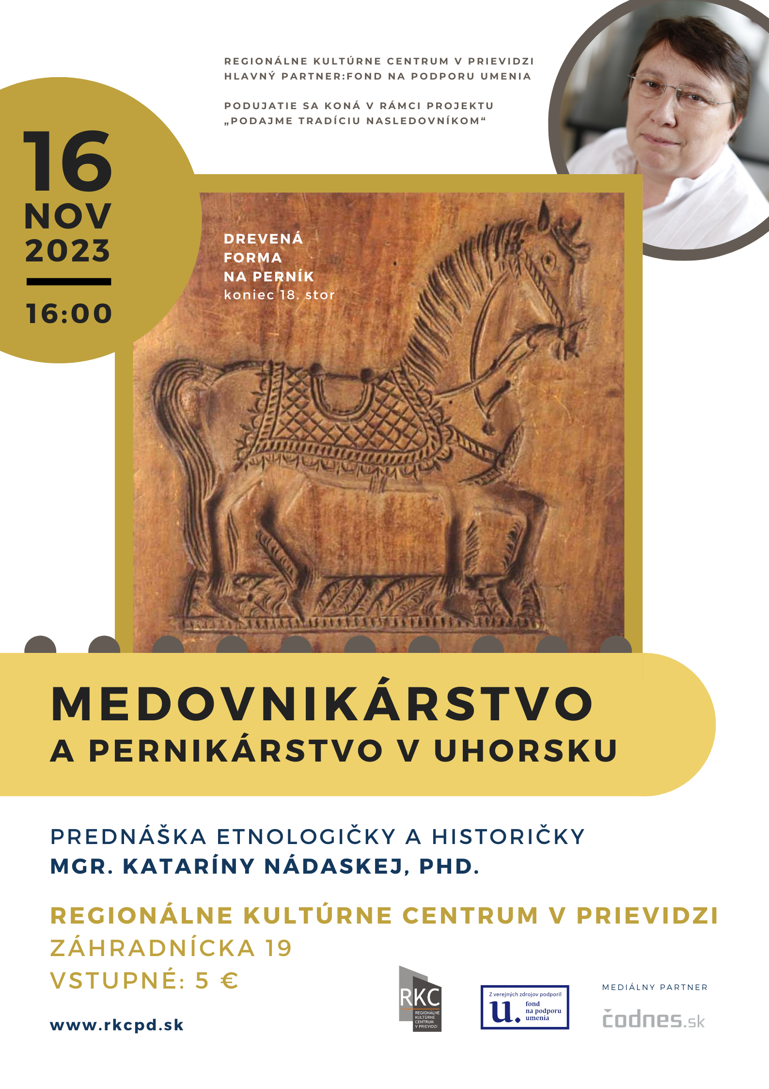 Aké boli sladké cesty, ktoré priviedli medovník do Európy? Aký bol rozdiel medzí perníkom a medovníkom? O zdobnosti medovníkov a ich význame pre potešenie ľudí, o medovníkových formách, mede a včelároch sa dozviete na prednáške historičky a etnologičky Kataríny Nádaskej.