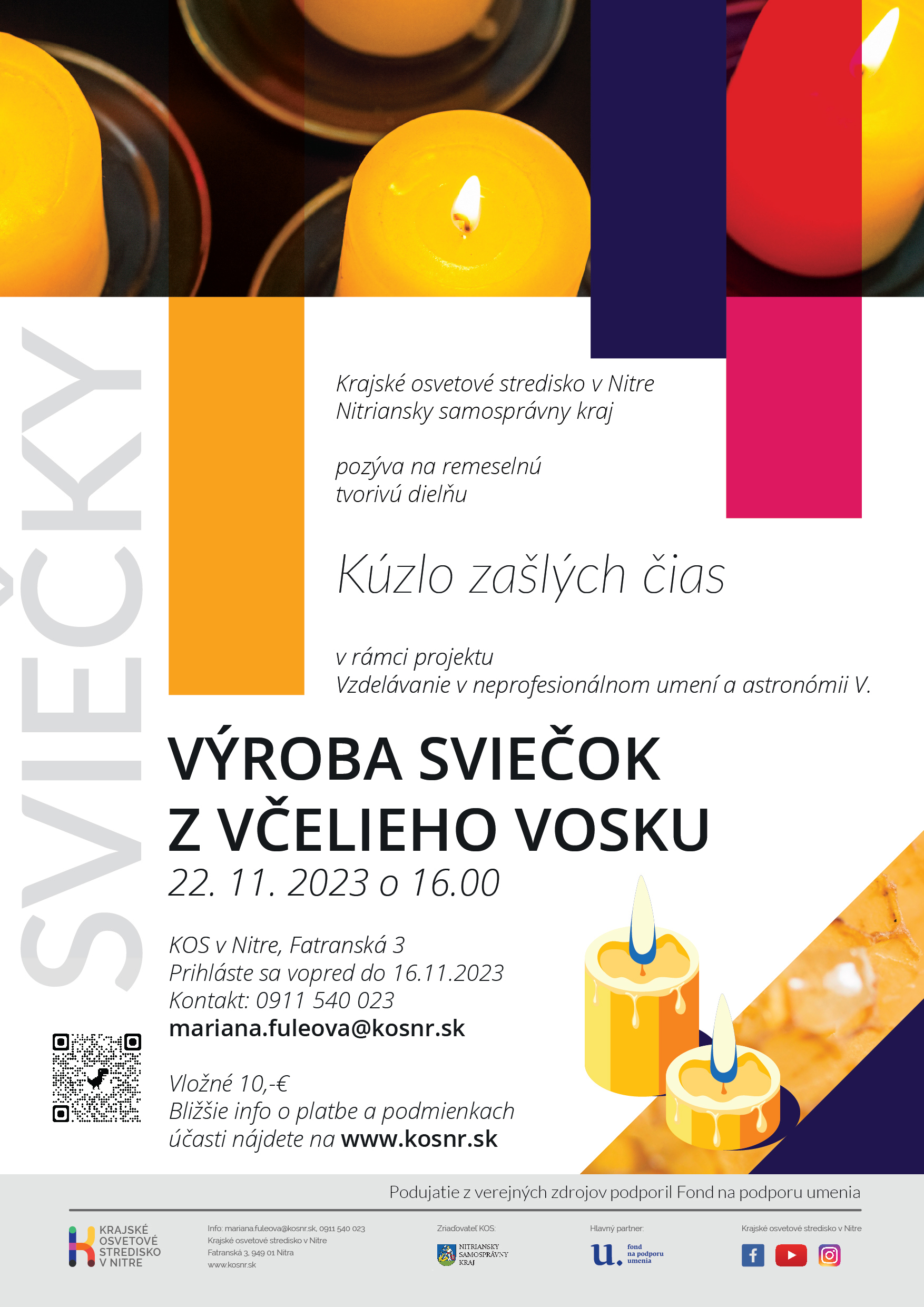 remeselná tvorivá dielňa na tému: "Výroba sviečok z včelieho vosku" Miesto konania: Nitra Lektorka: PhDr. Romana Píteková, Dipl. mt. l.