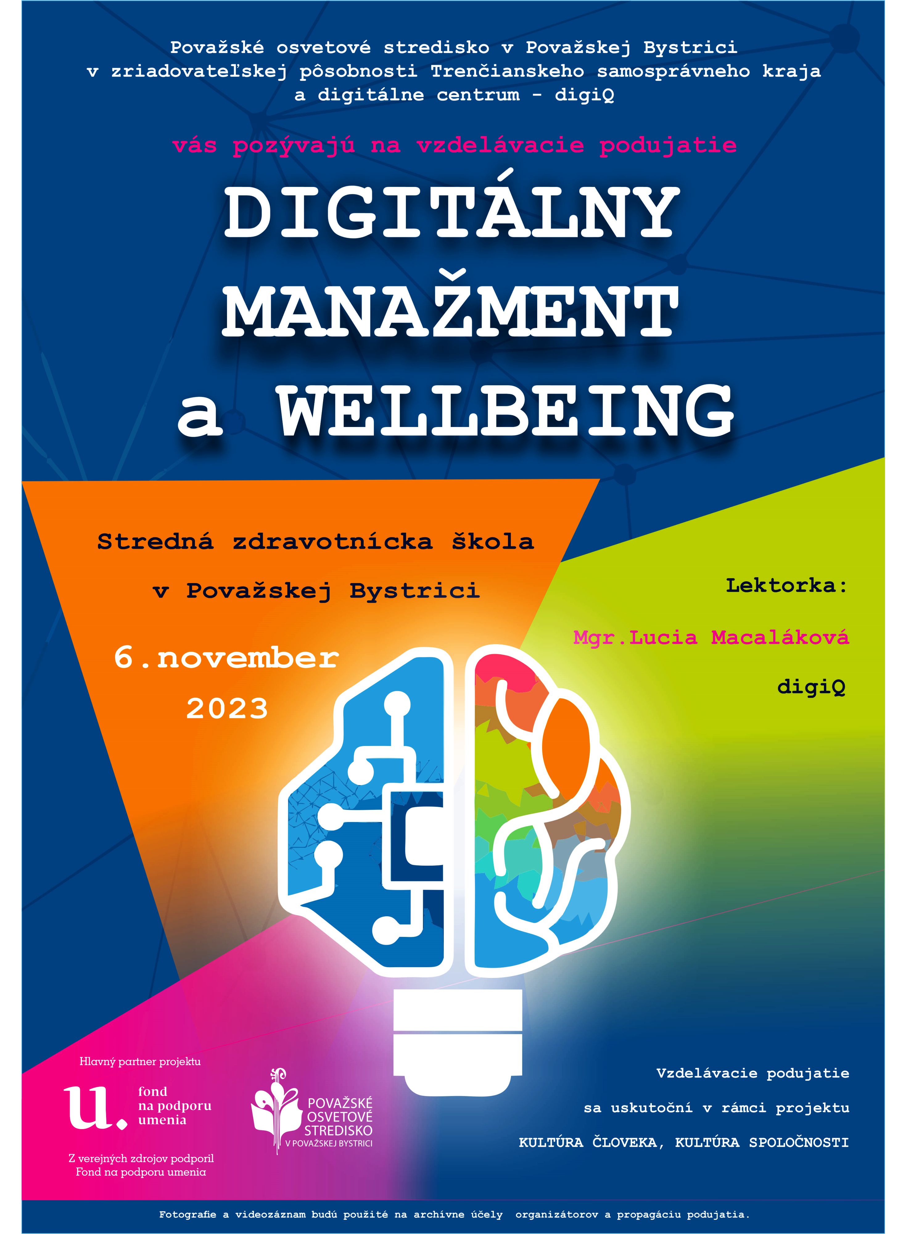 Vzdelávacie podujatie pre študentov Strednej zdravotníckej školy v Považskej Bystrici na tému DIGITÁLNY MANAŽMENT A WELLBEING.