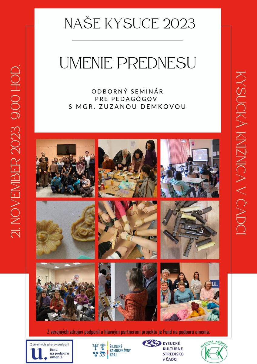 Odborný vzdelávací seminár pre pedagógov, ktorí sa intenzívne venujú príprave recitátorov na ZŠ a SŠ a všetkým záujemcom o umelecký prednes, zameraný na všetky oblasti umeleckého prednesu, spojený s praktickými cvičeniami.