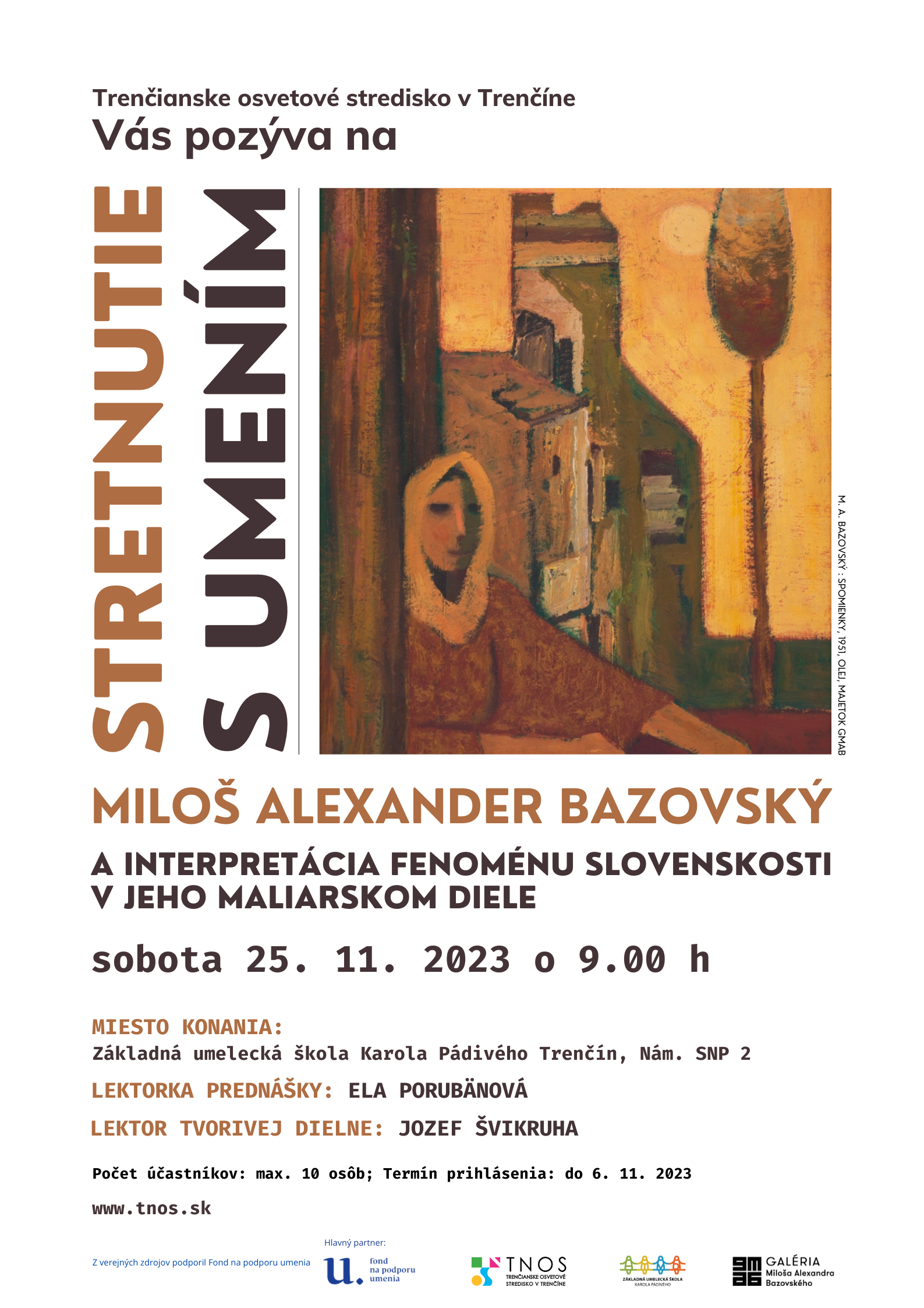 Tretia časť cyklu STRETNUTIE S UMENÍM bude venovaná maliarovi MILOŠOVI ALEXANDEROVI BAZOVSKÉMU a interpretácii fenoménu slovenskosti v jeho maliarskom diele.