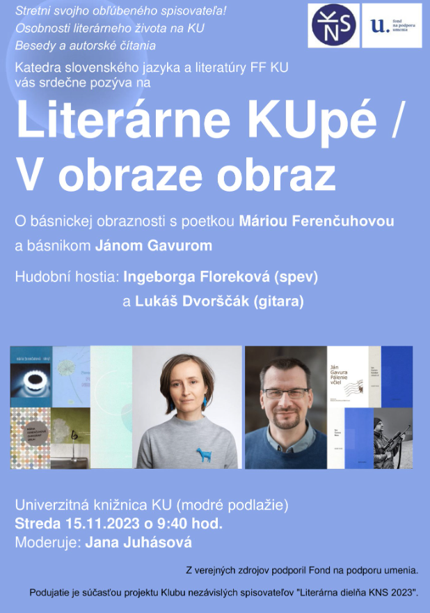 Literárne KUpé. V obraze obraz. Univerzitná knižnica v Ružomberku. Hostia: Mária Ferenčuhová, Ján Gavura