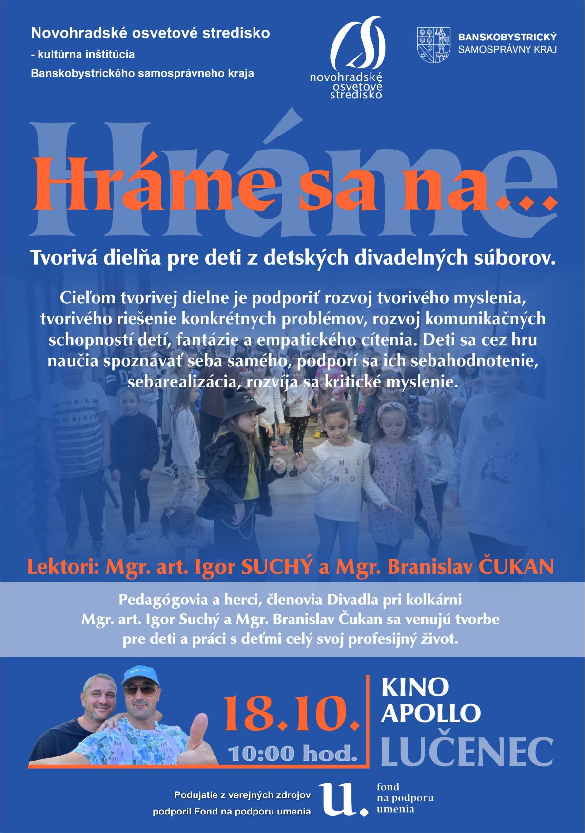Poďme sa hrať - dielne zamerané na tvorbu jednoduchej divadelnej hry podporujúci zdravý rozvoj tvorivosti u detí ZŠ. Cieľom je vytvoriť hru z bežných činností.