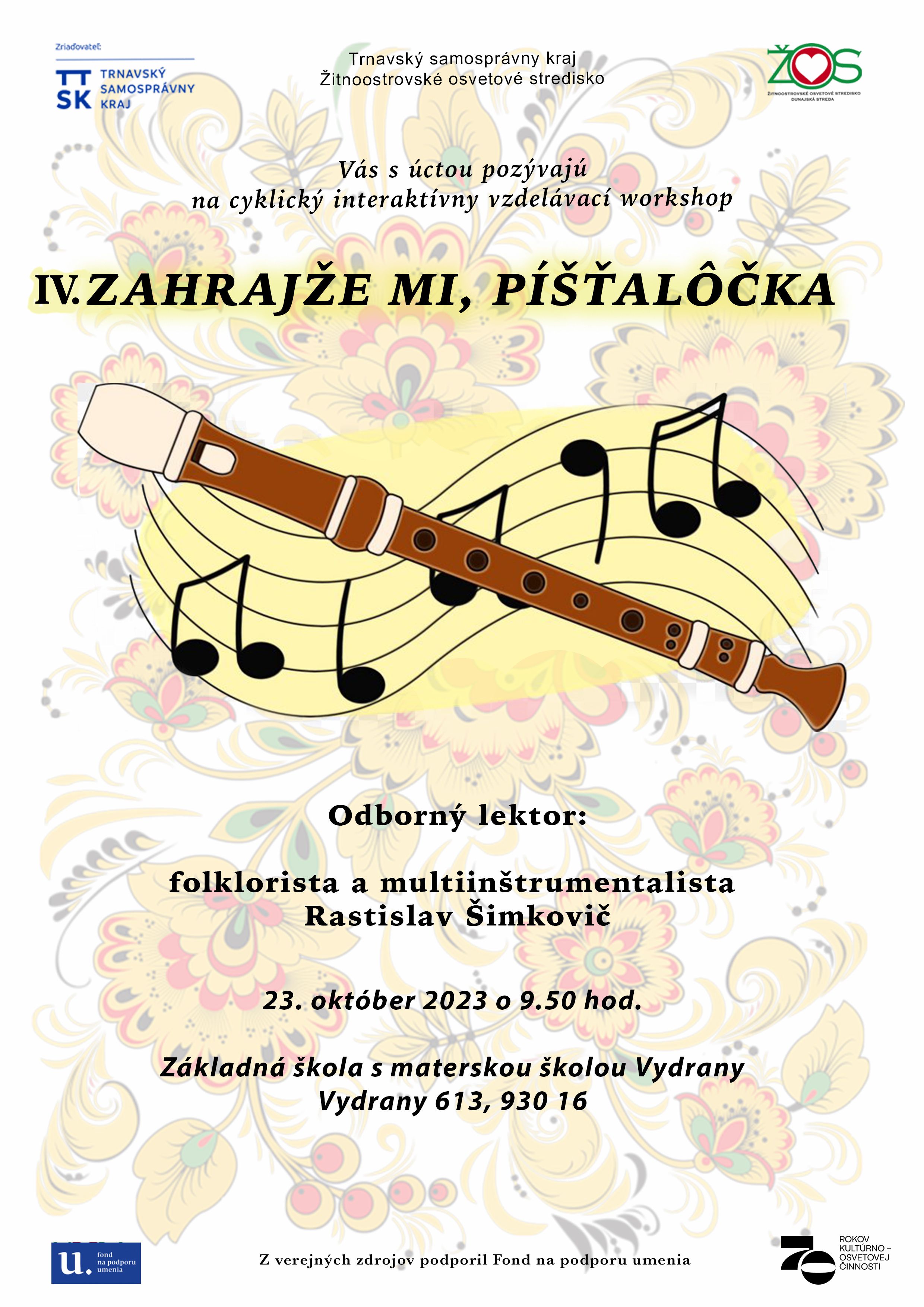 IV. cyklický interaktívny vzdelávací workshop pre deti a mládež, priblíženie im niektorých tradičných ľudových hudobných nástrojov a folklóru, slovenskej ľudovej kultúry v našom prihranične národnostne zmiešanom regióne