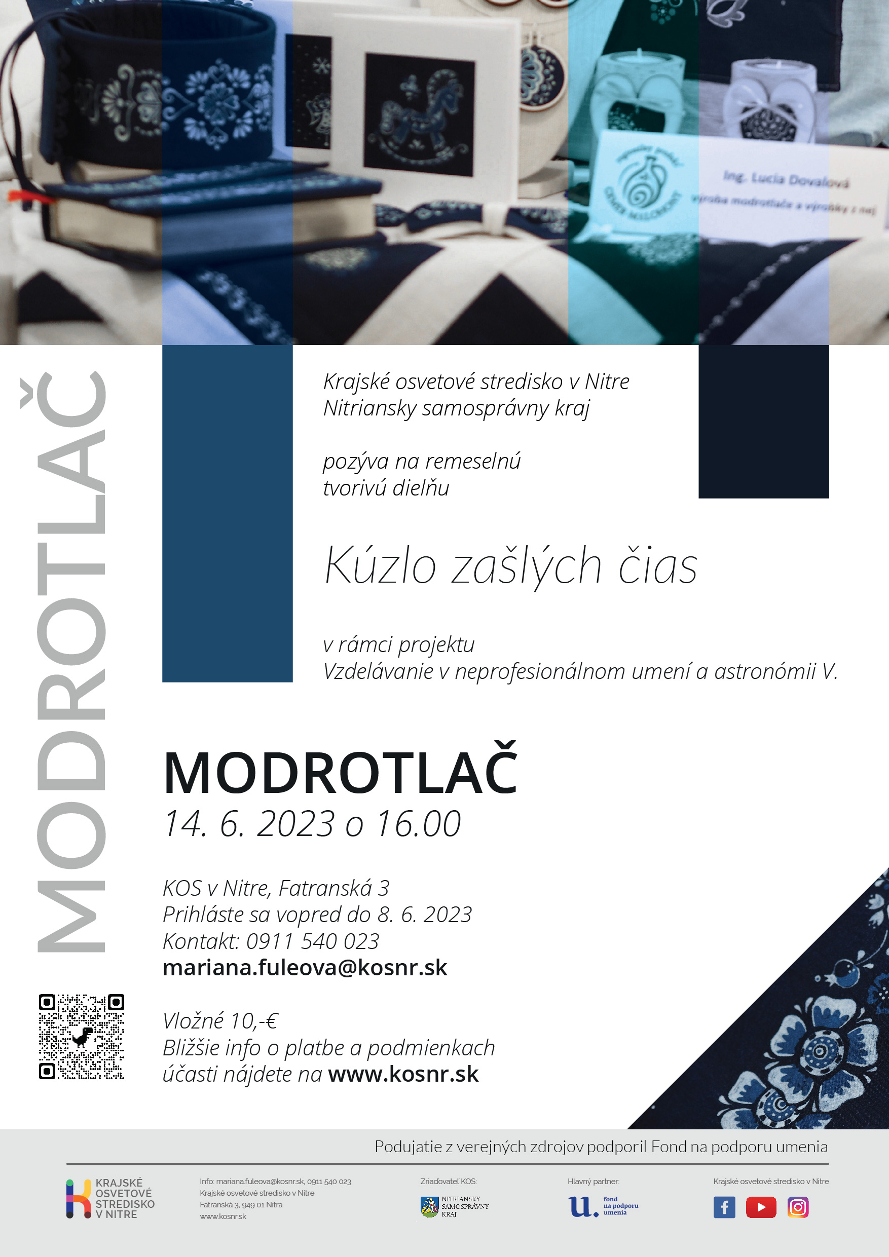 remeselná tvorivá dielňa na tému "MODROTLAČ". Miesto konania: KOS v NITRE Lektorka: Ing. Lucia Dovalová