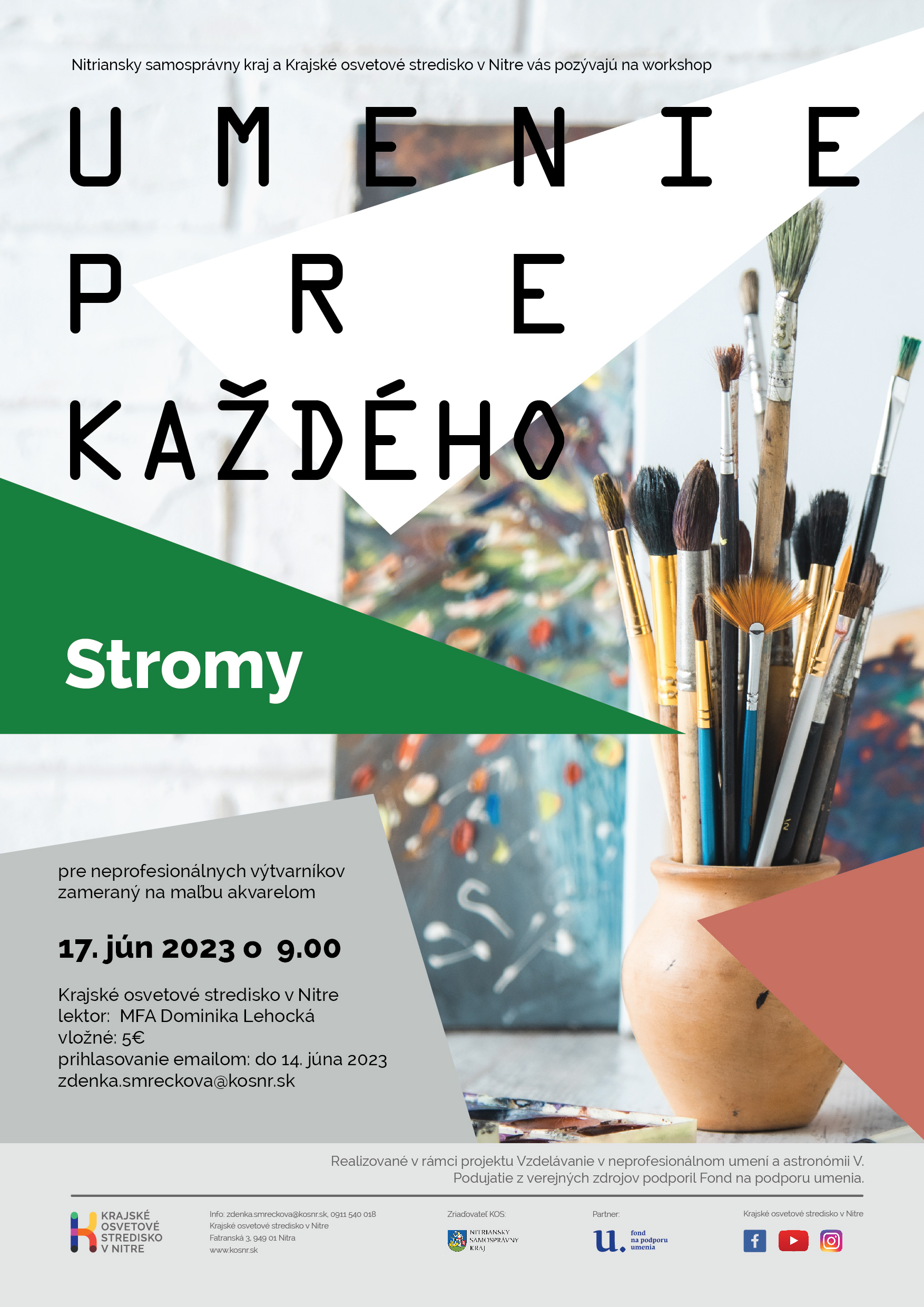 UMENIE PRE KAŽDÉHO – STROMY výtvarný workshop pre neprofesionálnych výtvarníkov zameraný na akvarel kde: Krajské osvetové stredisko v Nitre lektorka: MFA Dominika Lehocká