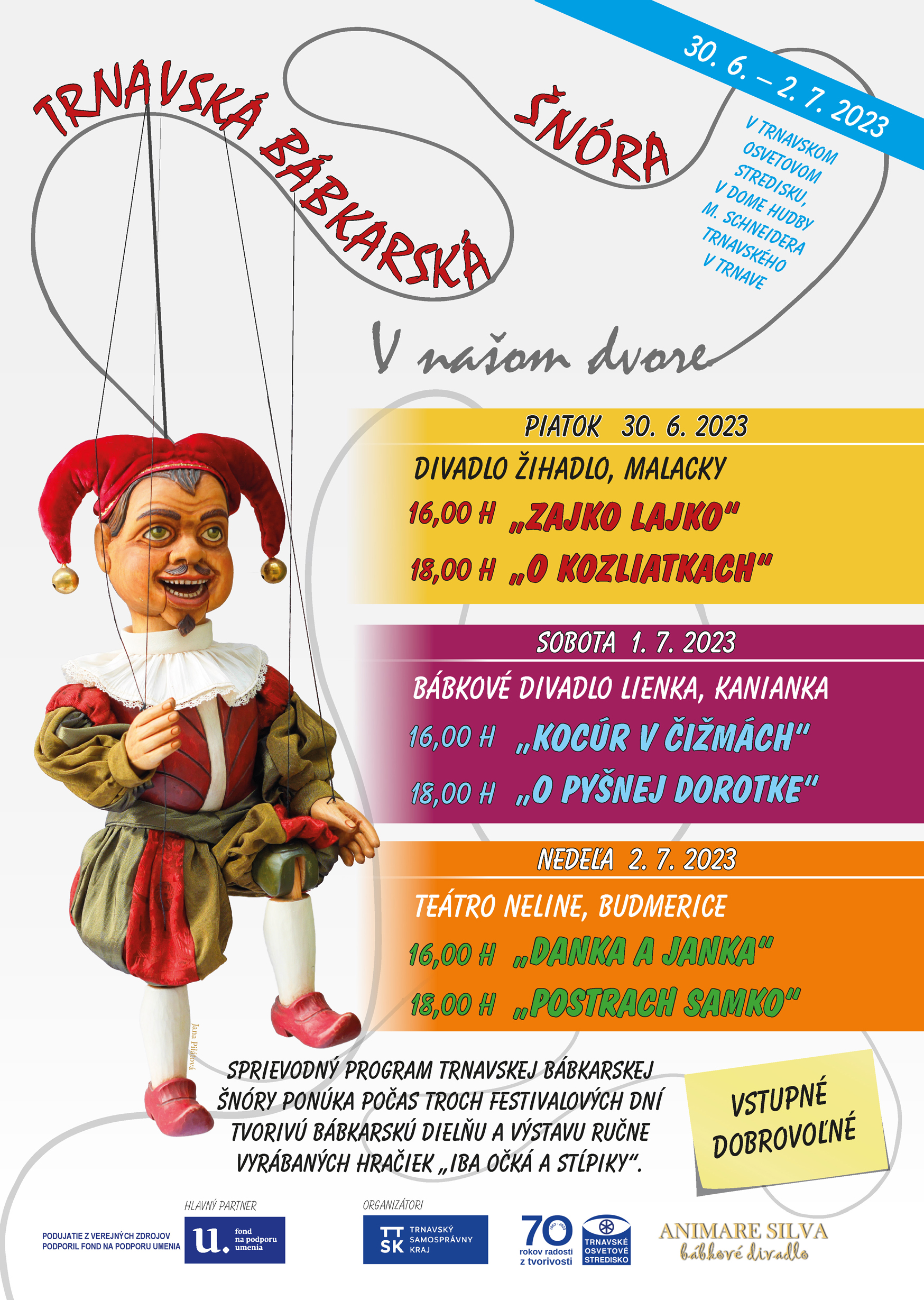 V projekte Trnavská bábkarská šnóra (TBŠ), sme sa rozhodli pokračovať i v roku 2023, opäť prinášať nezabudnuteľné zážitky prostredníctvom bábkového divadla. Bábkový festival divadla, pohody a zábavy TBŠ počas troch dní ponúkne návštevníkom zaujímavú, originálnu, súčasnú tvorbu a tiež predstavenia prostredníctvom oživených drevených marionet v rozprávkach. Projekt je zameraný na priblíženie sveta bábok, marionet a predstavenia súčasných bábkovo-divadelných súborov.