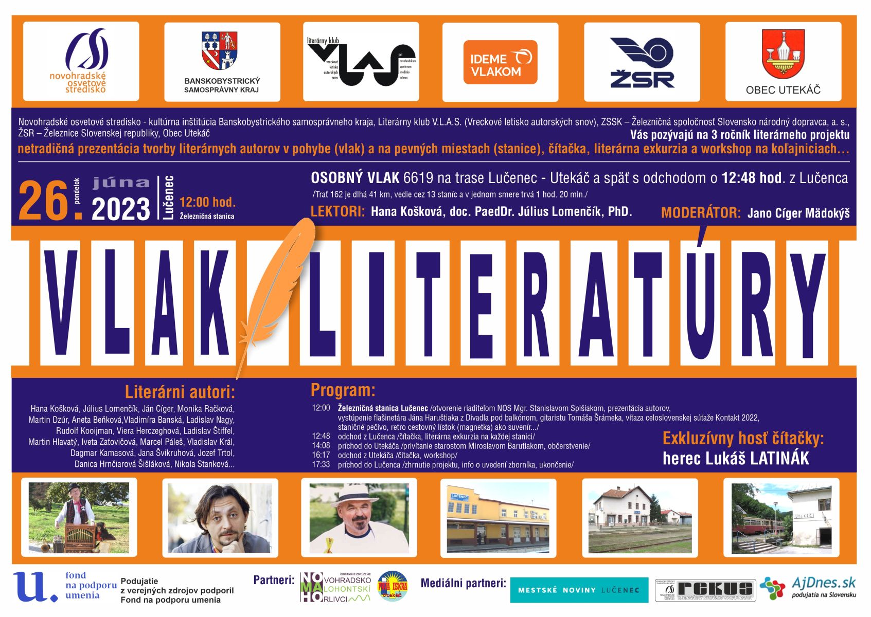Čítačka, workshop a exkurzia na koľajniciach. Netradičná forma prezentácie tvorby literárnych autorov. Tretí ročník literárneho projektu, ktorý sa opakuje každých 5 rokov (2013 a 2018). Tentokrát na trase Lučenec – Utekáč.
