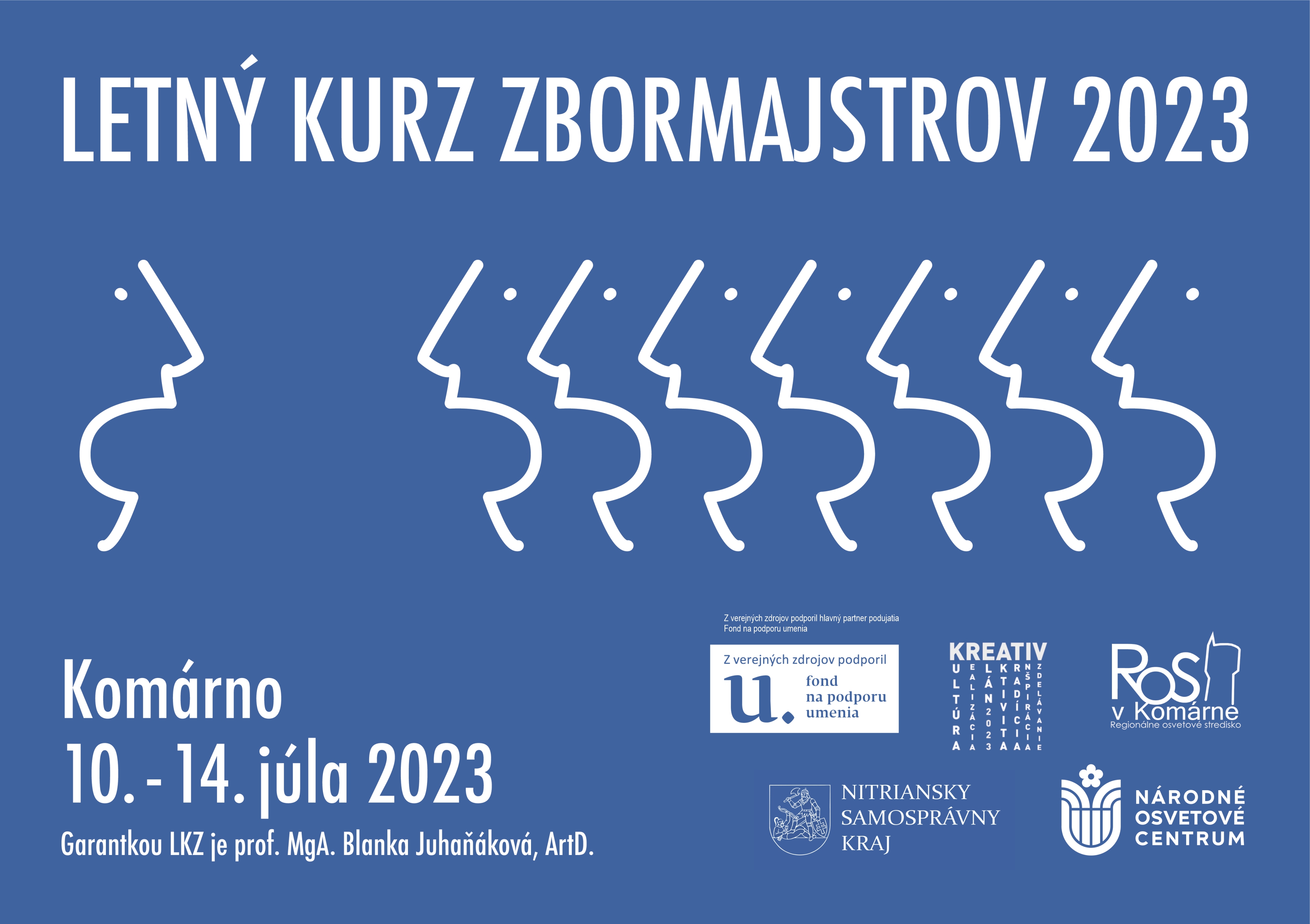 Letný kurz zbormajstrov 2023 je odborné vzdelávanie určené zbormajstrom všetkých kategórií amatérskych speváckych zborov (detských, mládežníckych a dospelých), začiatočníkom, mierne pokročilým i pokročilým. Garantkou je prof. MgA. Blanka Juhaňáková, ArtD., a ďalšími lektormi sú: Darina Andučič-Tóthová, DiS. art., Mgr. Tatiana Kanišáková, PhD., Mgr. Katarína Kružíková a doc. Mgr. art. Pavol Tužinský, ArtD. Podujatie sa koná v rámci projektu KREATIV 2023.