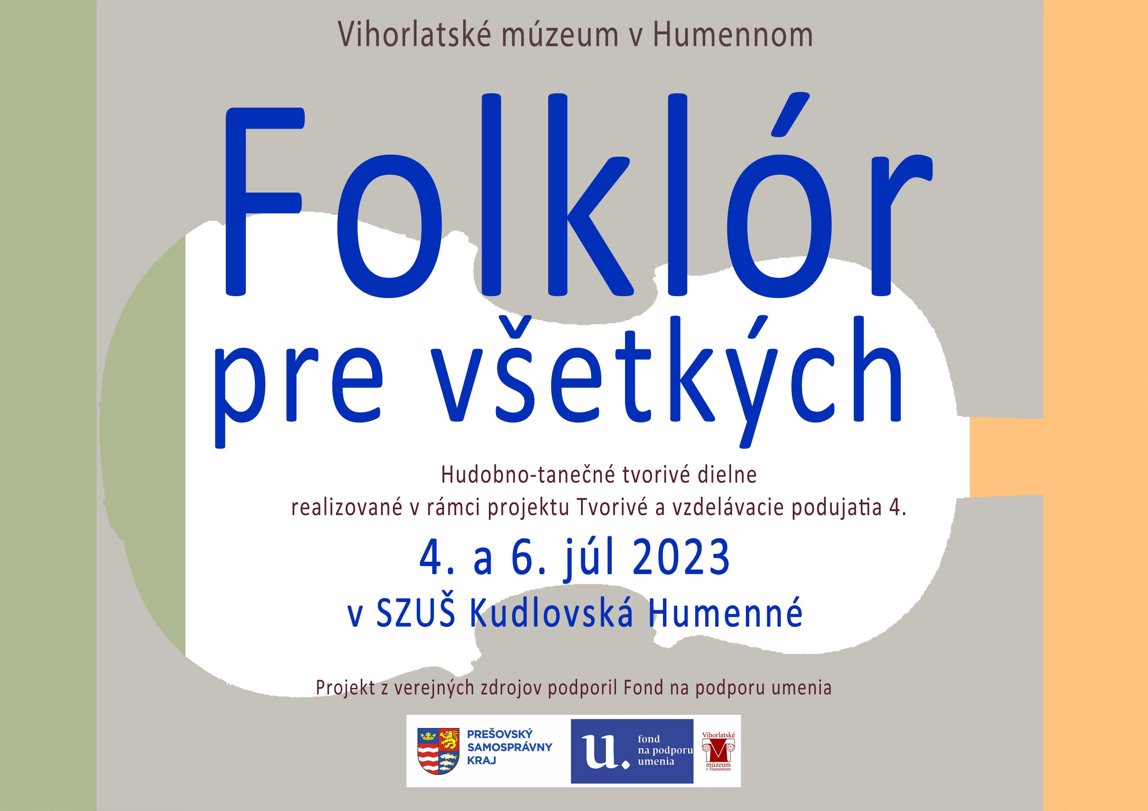 Dvojdňové folklórne hudobno-tanečné tvorivé dielne zamerané na deti a mládež škôl humenského regiónu.