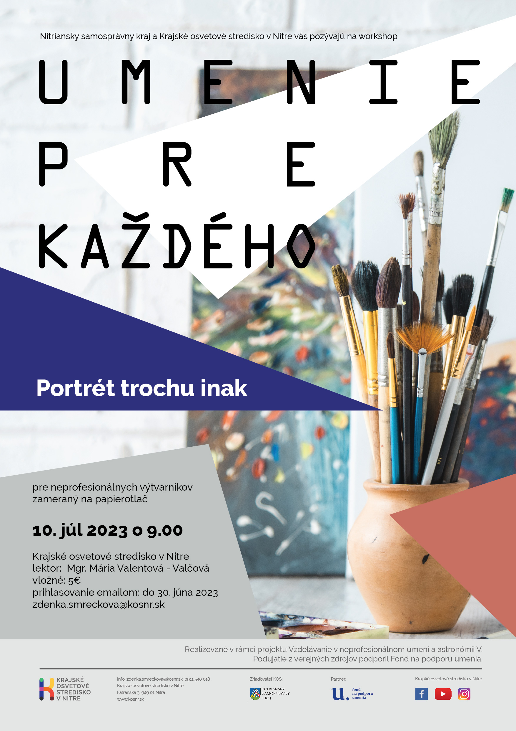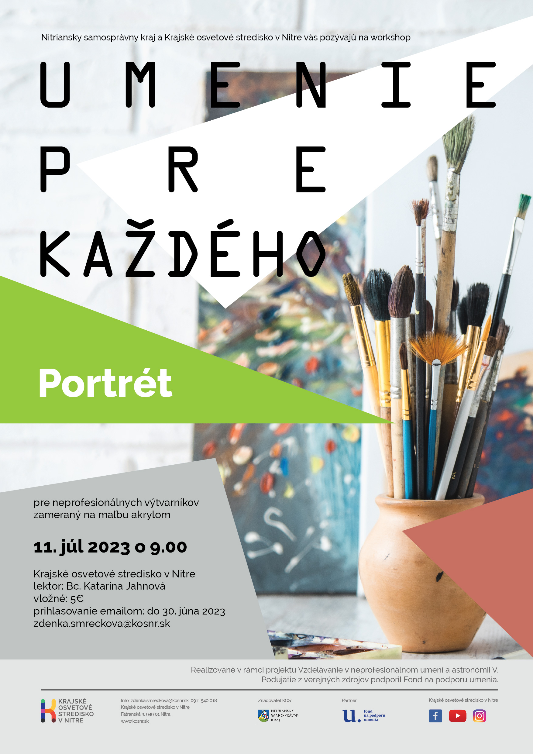 výtvarný workshop pre neprofesionálnych výtvarníkov zameraný na maľbu akrylom lektorka: Bc. Katarína Jahnová kde: Krajské osvetové stredisko v Nitre