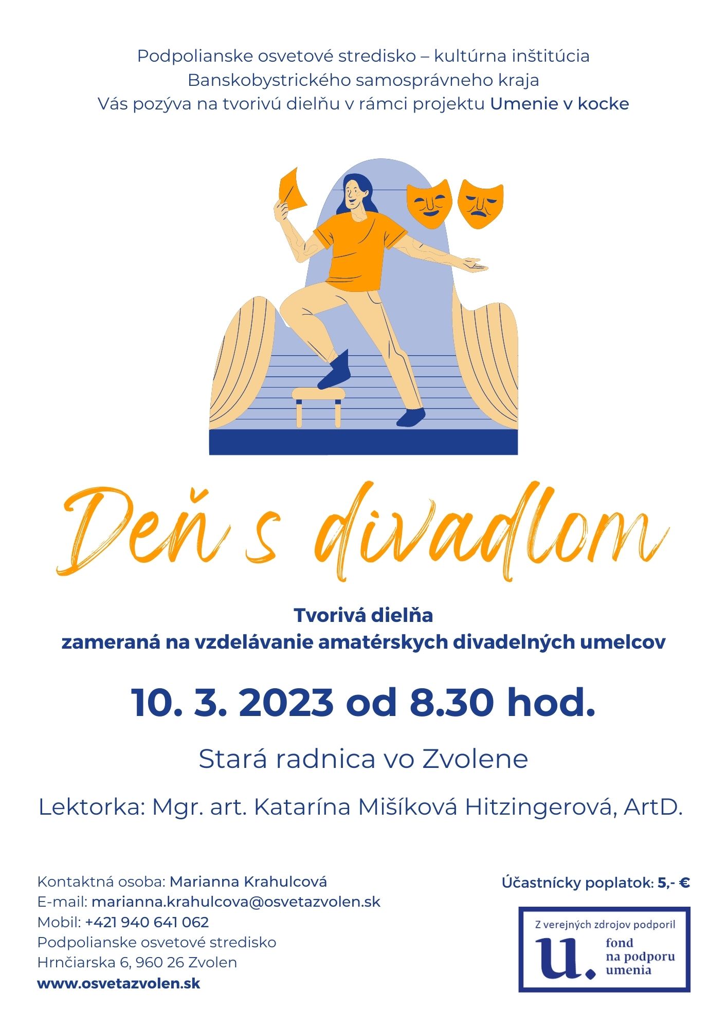 Deň s divadlom-cyklus stretnutí pre amatérskych divadelných umelcov. Obsahom sú teoretické i praktické východiská, postupy pri výbere divadelnej hry, dramatizácia, dramaturgia, scénografia, práca s režisérom a herecké techniky.