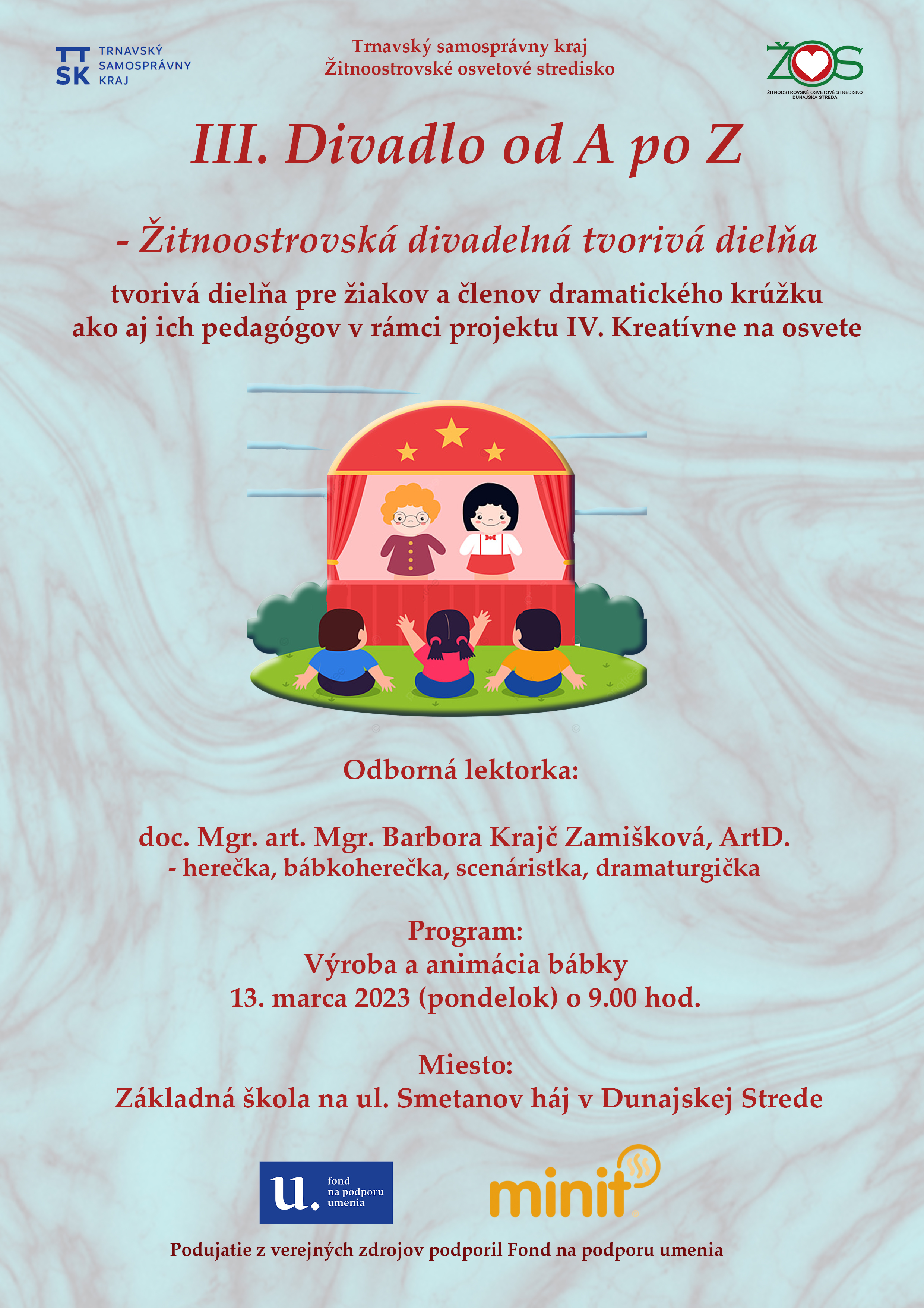 Interaktívny vzdelávací workshop pre členov detských a mládežníckych divadelných súborov, učiteľov a vedúcich dramatických krúžkov okresu Dunajská Streda