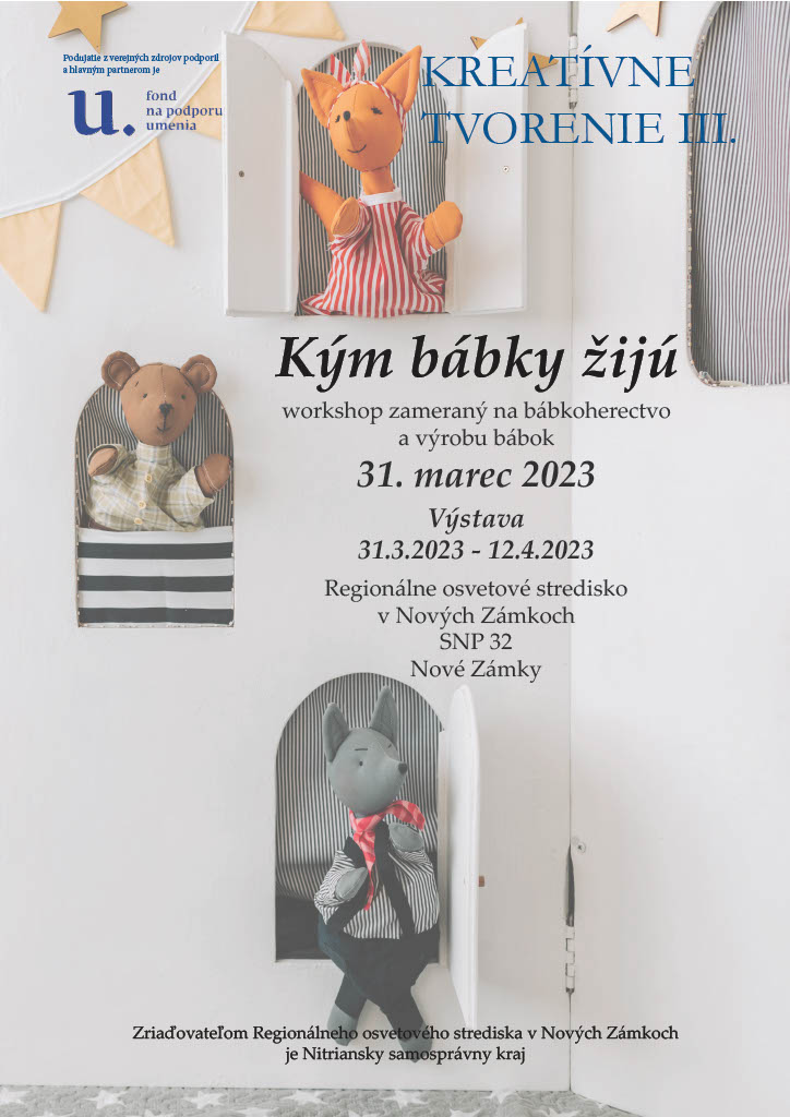teoretický a praktický workshop, ktorého cieľom je priblížiť účastníkom umenie bábkoherectva a zoznámiť sa nielen s tvorbou, ale aj ako postupovať pri práci s bábkami. Výstupom bude výstava ručne vyrobených bábok