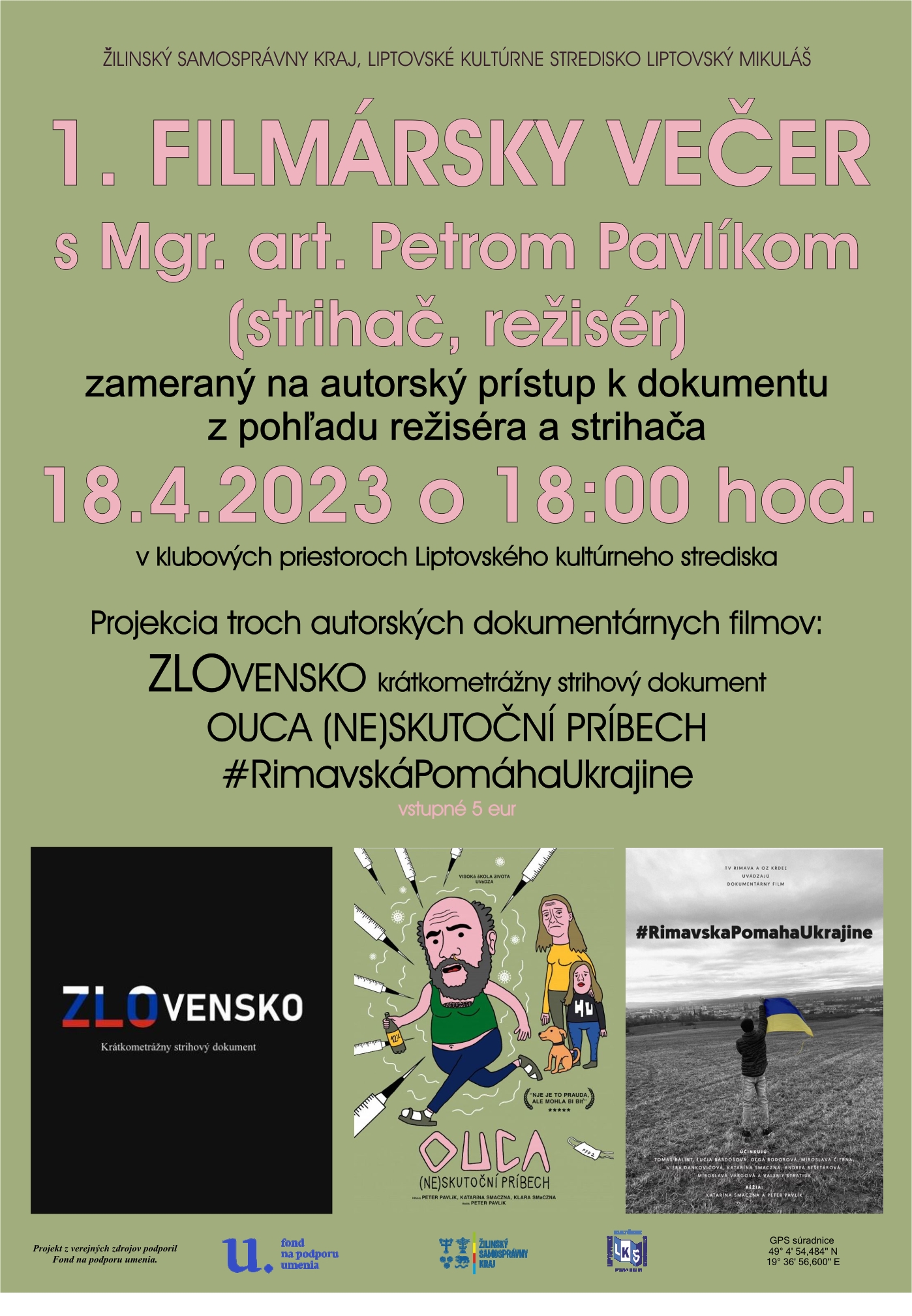 Liptovské kultúrne stredisko pripravilo pre milovníkov filmu a neprofesionálnych filmárov 5 večerov, počas ktorých sa budete môcť stretnúť s profesionálnymi filmárskymi tvorcami.