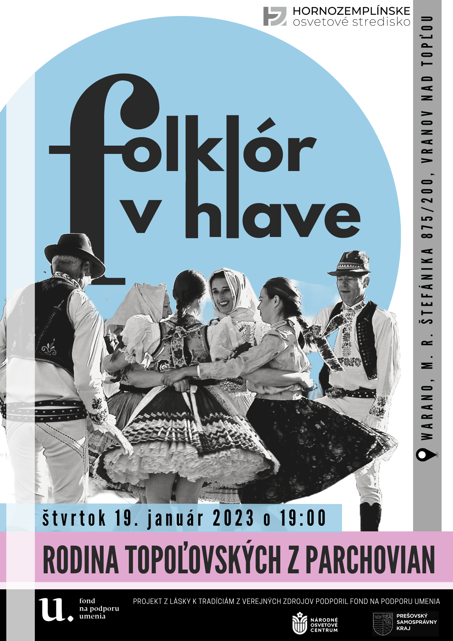 Folklór v hlave má za cieľ popularizovať TĽK a predstaviť bližšie jeho výrazné osobnosti širokej verejnosti. Rozhovory s osobnosťami sú prepojené ich kultúrno-umeleckými vystúpeniami a projekciou. V roku 2023 plánujeme 3 podujatia. Ako prvá sa nám predstaví rodina Topoľovských.