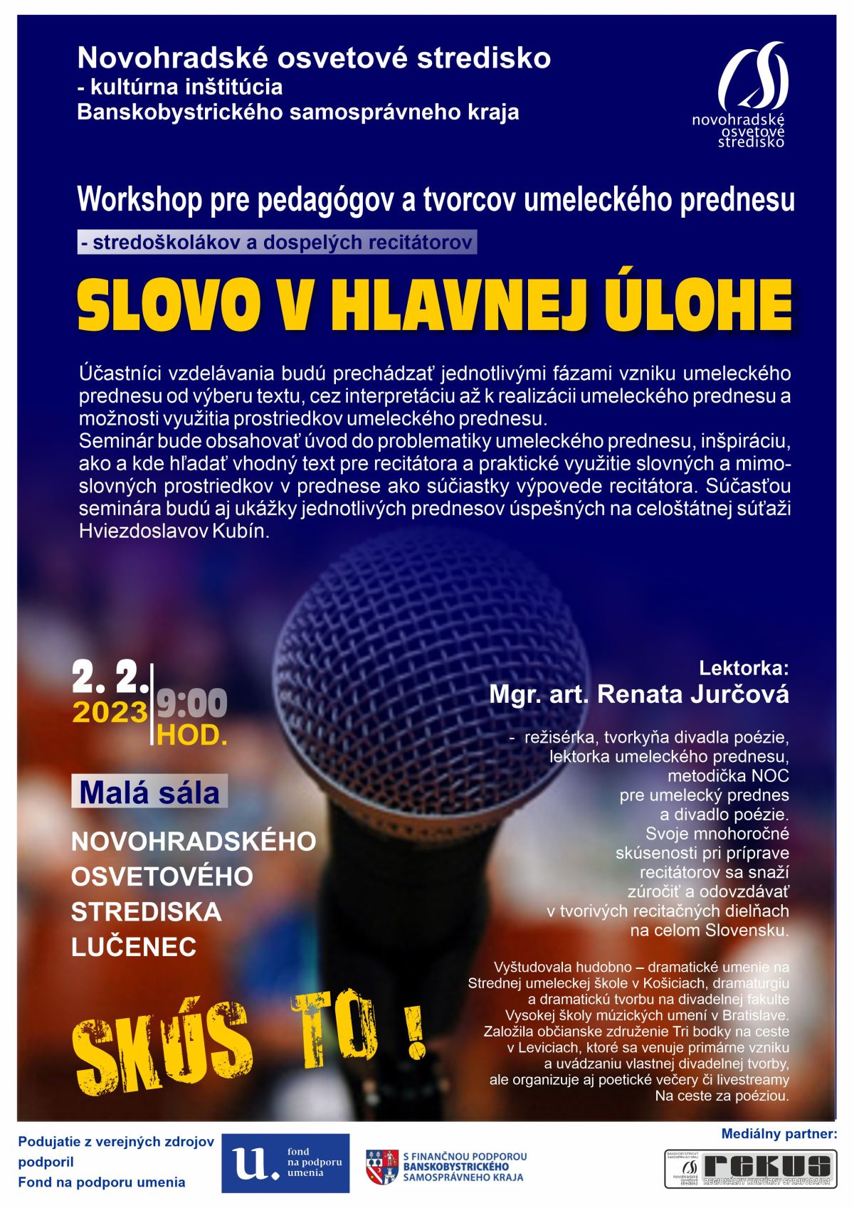 Cieľom projektu je odborný rast recitátorov, moderátorov, hercov a rečníkov formou podnetných tvorivých dielní pod vedením odborných lektorov.