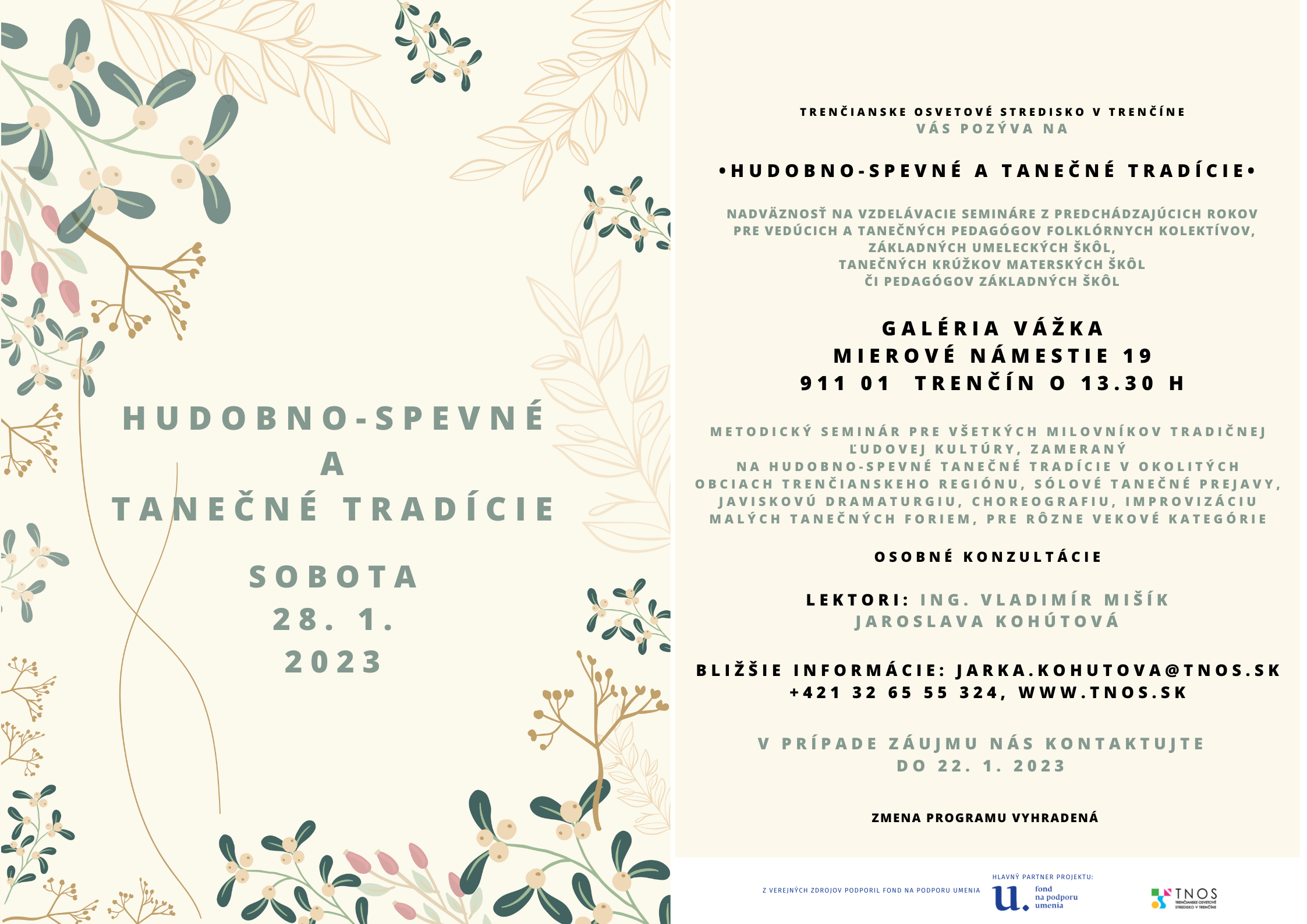 Trenčianske osvetové stredisko v Trenčíne Vás pozýva na vzdelávací seminár Hudobno-spevné a tanečné tradície.