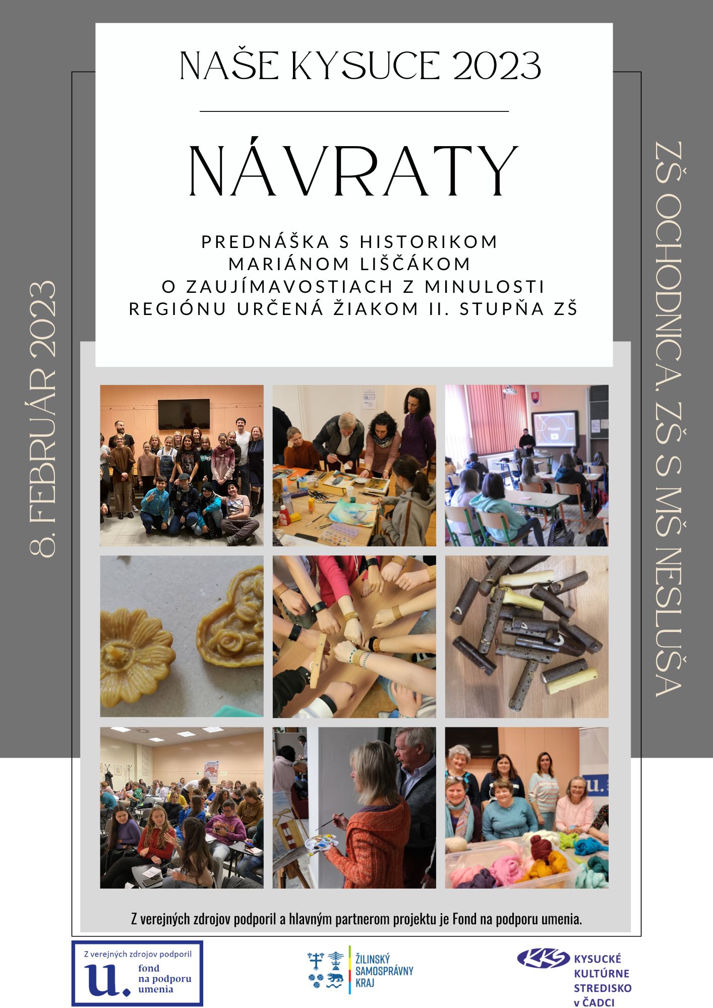 V rámci projektu Naše Kysuce 2023 si vypočujú žiaci II. stupňa v ZŠ Ochodnica a ZŠ s MŠ Nesluša zaujímavé informácie o minulosti nášho regiónu. Lektorom bude historik Marián Liščák.