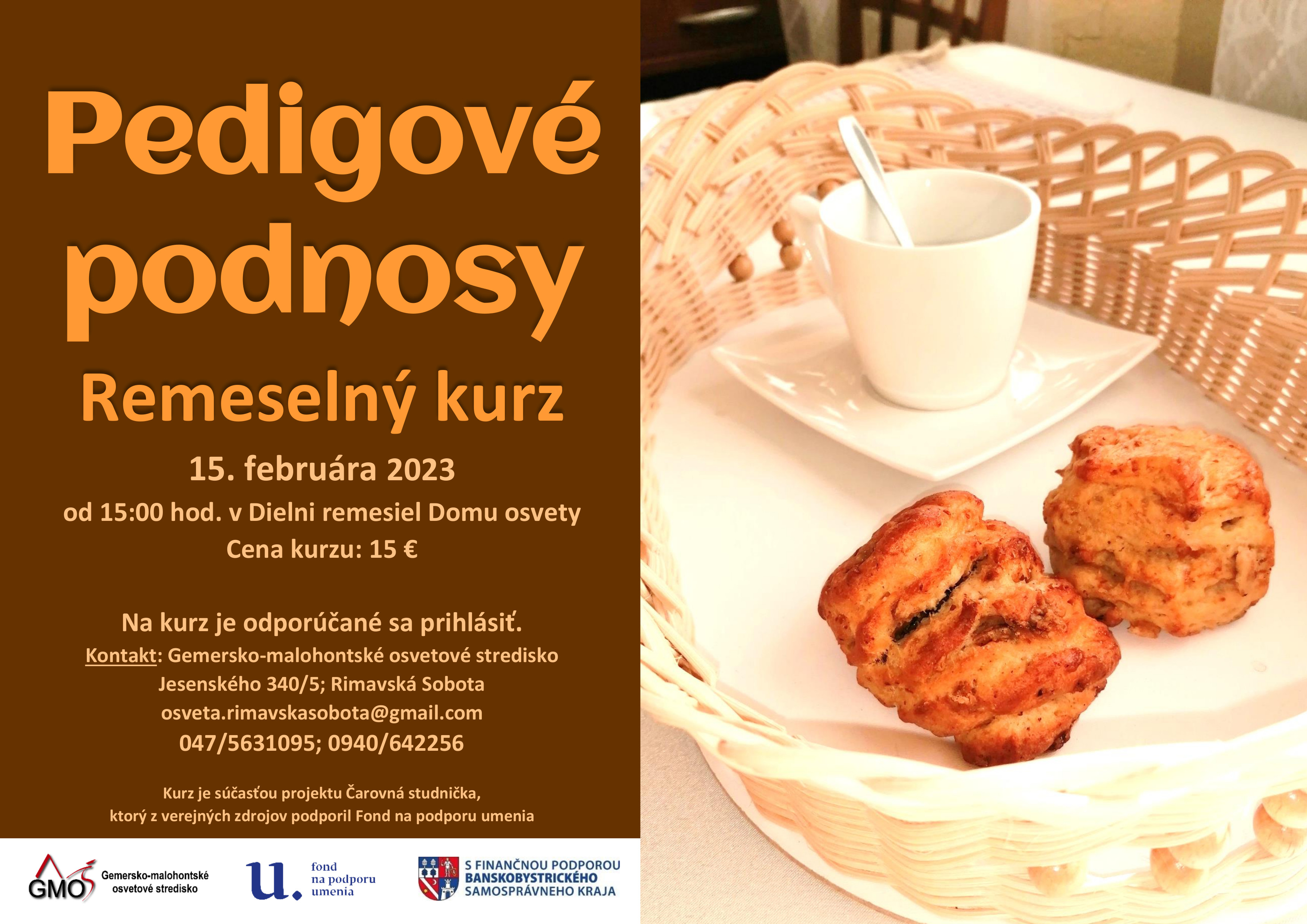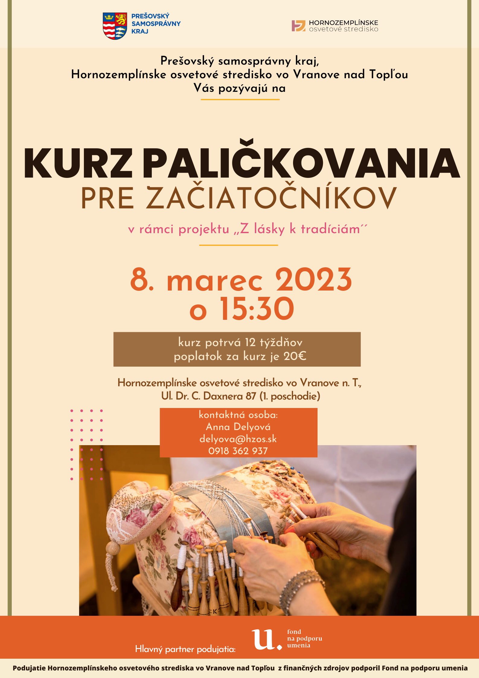 Čipkárky si prispôsobujú technické postupy svojim. Kurzom, ktorý sa teší veľkej obľube a má u nás už svoju tradíciu, chceme účastníkov nielen naučiť paličkovať, ale umožniť im aj samostatne si navrhnúť a vyrobiť vzor použiteľný ako doplnok odevu, paličkovaný šperk, obraz, prestieranie. Prispejeme tak k prehĺbeniu estetického cítenia, kreativity, fantázie účastníkov a vzniku vzorov čipky, ktoré svojou výnimočnosťou a originalitou poslúžia aj ako doplnok vo folklórnom štýle.