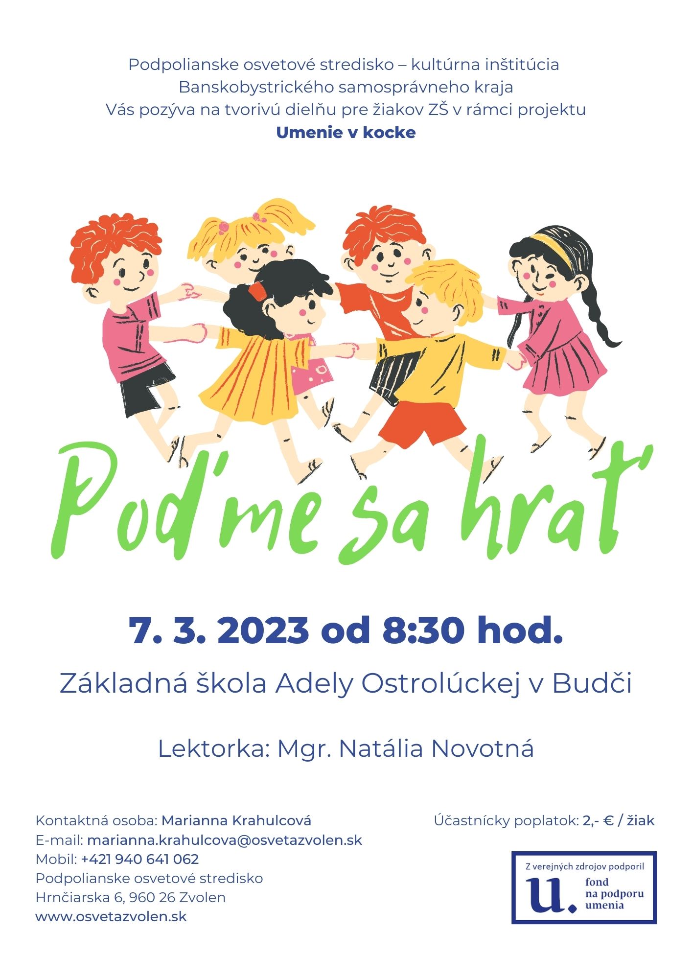 Poďme sa hrať - dielne zamerané na tvorbu jednoduchej divadelnej hry podporujúci zdravý rozvoj tvorivosti u detí ZŠ.