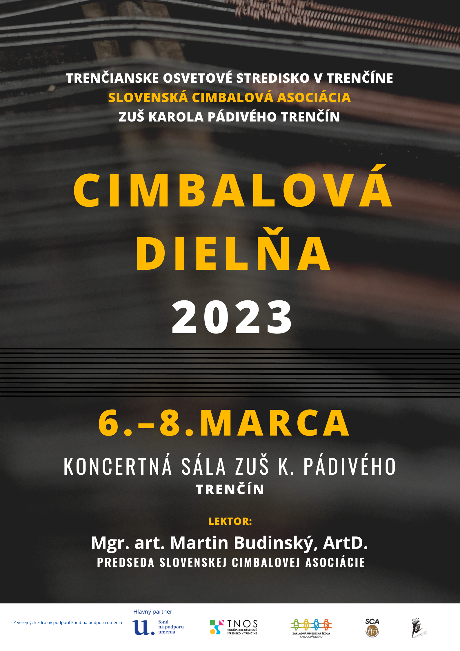 Trenčianske osvetové stredisko v Trenčíne pozýva mladých amatérskych cimbalistov na trojdňovú cimbalovú dielňu s profesionálnym lektorom Mgr. art. Martinom Budinským, ArtD. Dielňa je zameraná na teoretické i praktické vzdelávanie a získanie nových zručností v oblasti cimbalovej hry.