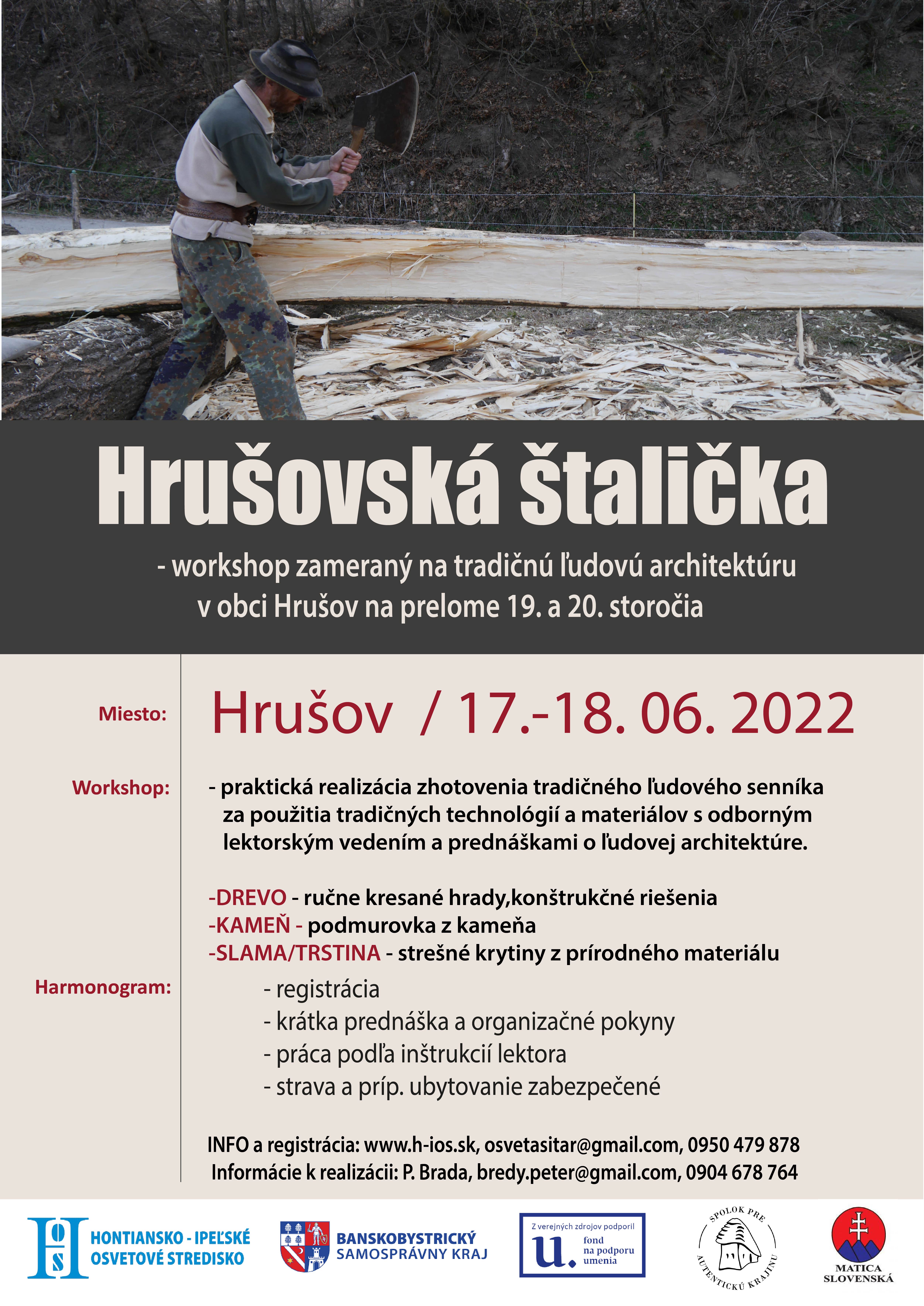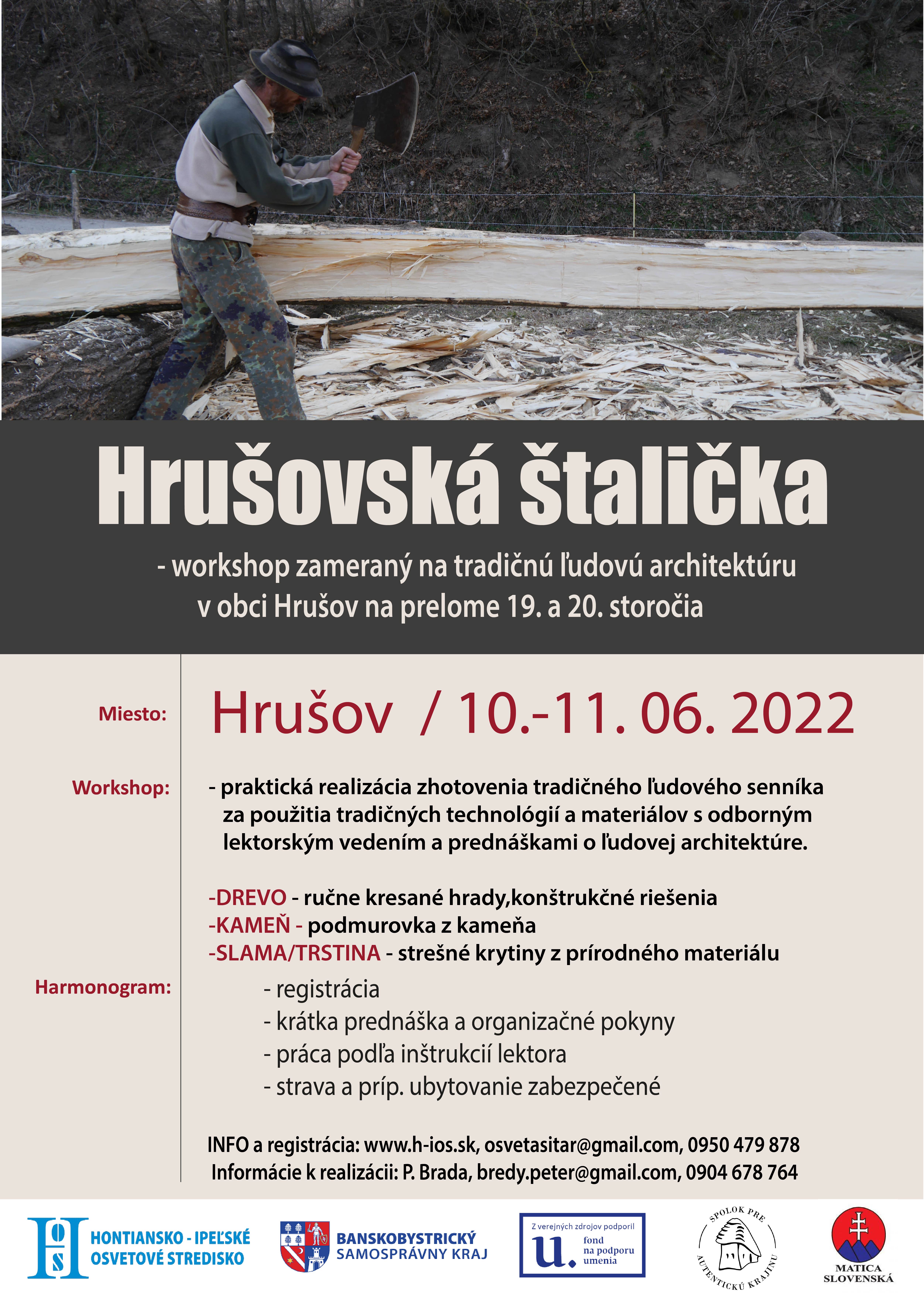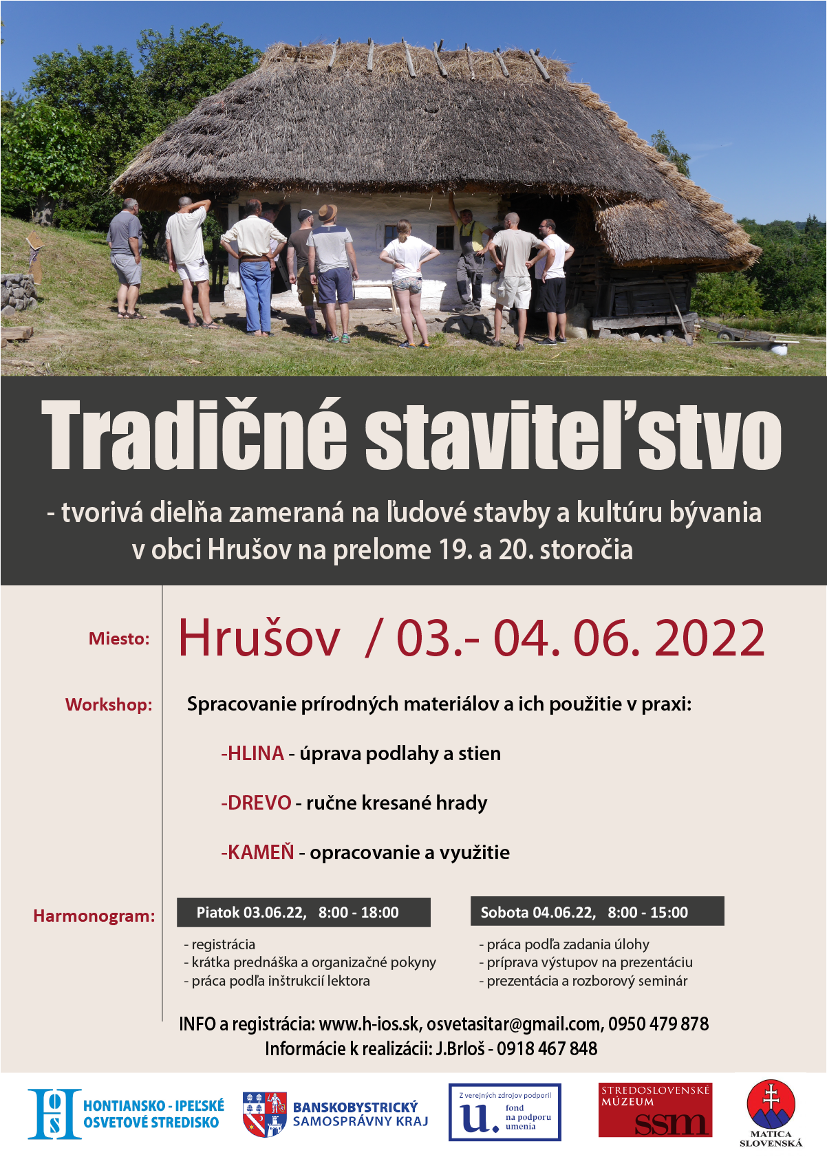 Zámerom aktivity je predstaviť účastníkom tradičné technologické stavebné postupy na prelome 19. a 20. Storočia a ich praktické využitie. Tvorivá dielňa bude mať edukačný charakter, vo vzťahu k ľudovým stavbám a kultúry bývania v autentickom prostredí hrušovskej lazníckej usadlosti.
