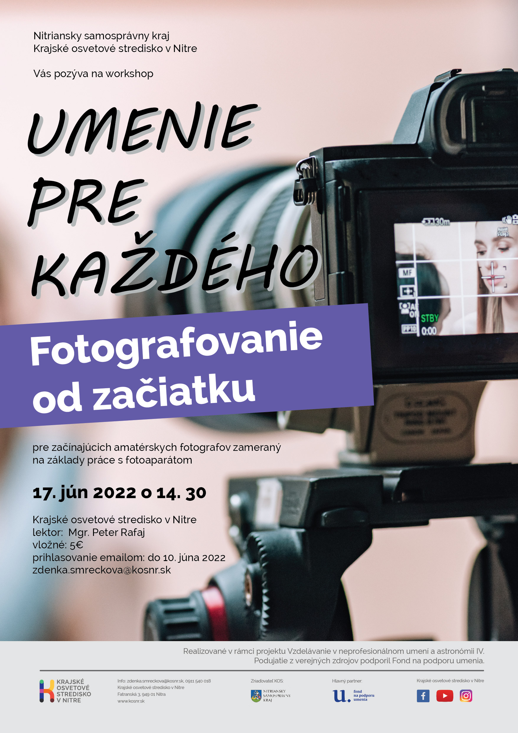 fotografický workshop pre začínajúcich amatérskych fotografov zameraný na základy práce s fotoaparátom kde: : Krajské osvetové stredisko v Nitre lektor: Mgr. Peter Rafaj