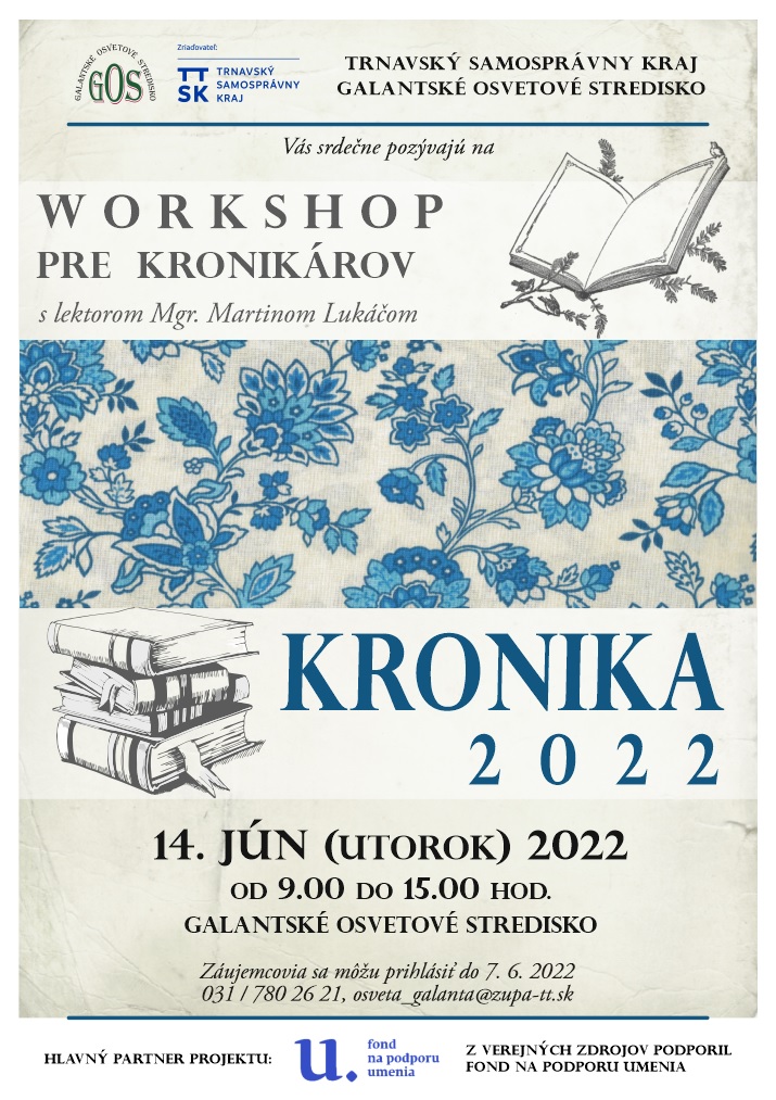 Galantské osvetové stredisko v roku 2022 organizuje v poradí 6. ročník úspešných vzdelávacích podujatí pre kronikárov pod názvom Kronika 2022, prostredníctvom ktorých sa významným spôsobom napomáha zvyšovaniu kvality kronikárskej práce v obciach a mestách. Začínajúci ako aj pokročilejší kronikári majú možnosť nadobudnúť nové poznatky a zručnosti. Workshopy prispievajú k aktívnemu vzdelávaniu kronikárov so zreteľom na zvýšenie kompetencie tvorcov kroník.