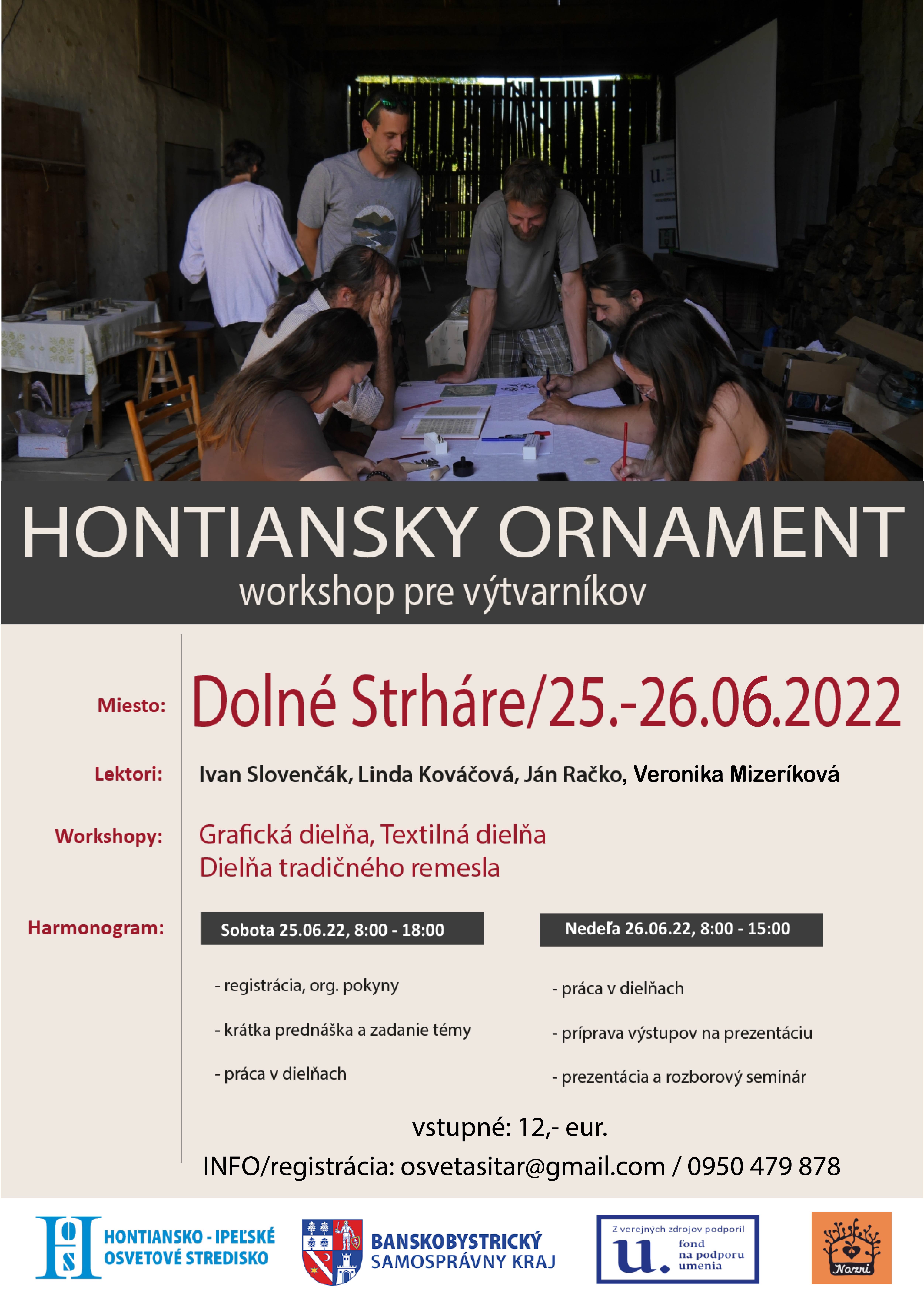 4. ročník tvorivej dielne so zameraním na tradičný ľudový ornament regiónu Hont určený neprofesionálnym výtvarníkom okresu. Cieľom je propagácia a znovuoživenie výtvarných tradícii regiónu a praktické využitie tradičných ľudových motívov novým spôsobom. Podujatie prebieha v tradičnom vidieckom prostredí obce Dolné Strháre.