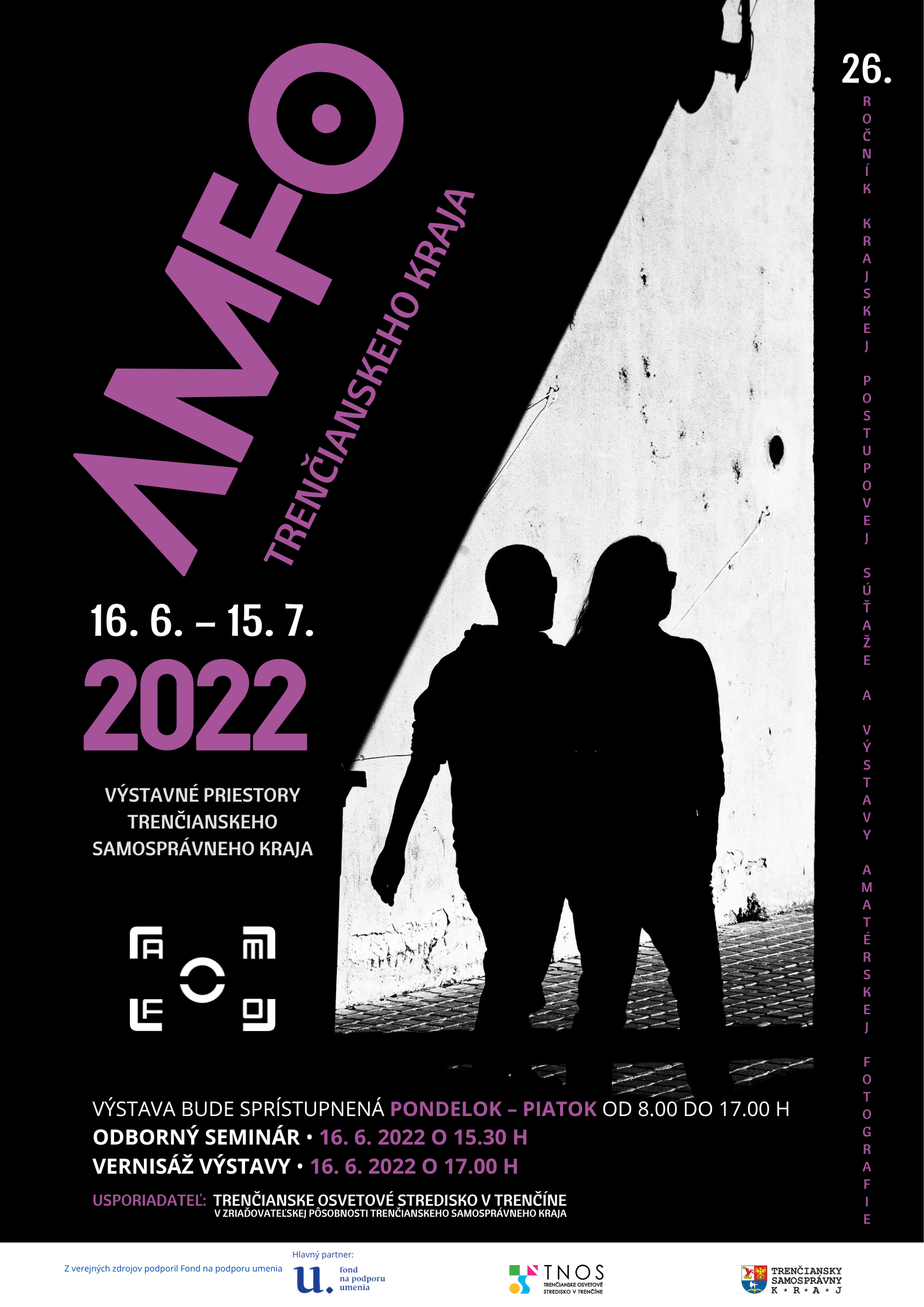 Pozývame vás na 26. ročník krajskej postupovej súťaže amatérskej fotografie – AMFO Trenčianskeho kraja 2022. Vernisáž výstavy sa uskutoční 16.6.2022 o 17.00 h vo výstavných priestoroch Trenčianskeho samosprávneho kraja (K dolnej stanici 7282/20A, Trenčín). Seminár k výstave sa uskutoční 16.6.2022 o 15.30 h v kongresovej sále TSK. Výstava bude sprístupnená pondelok – piatok od 8.00 – 17.00 h do 15.7.2022.