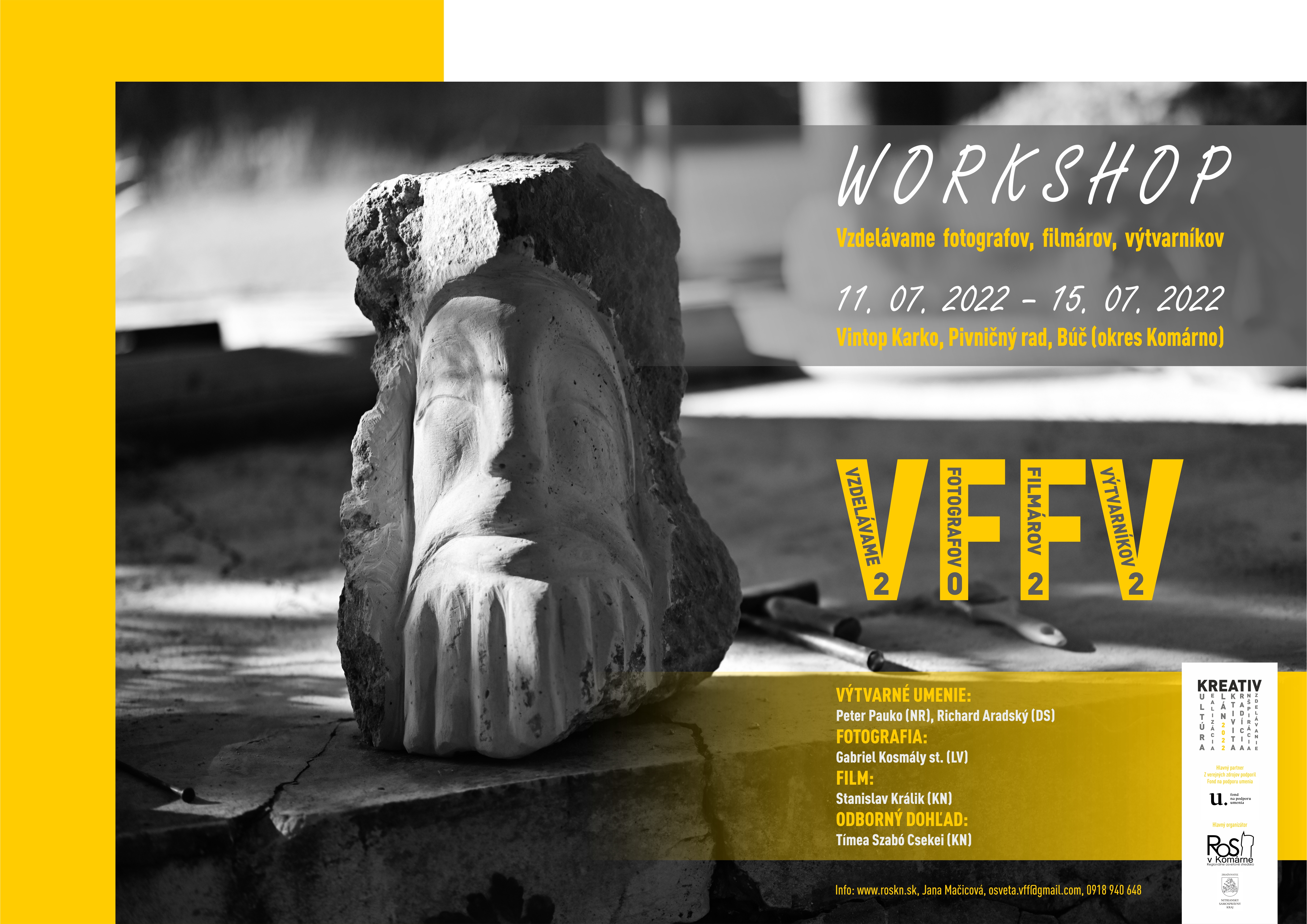 Dať umelcom priestor na prezentáciu svojej tvorby, vzájomnú konfrontáciu, rozšíriť obzory a naučiť ich nové výtvarné, fotografické a filmárske zručnosti to je cieľom workshopu VFFV 2022, ktorý sa bude konať v rámci projektu KREATIV 2022. Na naplnenie tohto cieľa Regionálne osvetové stredisko v Komárne pripravilo 5 dňový umelecký workshop zameraný na vzdelávanie amatérskych umelcov a ich inšpiráciu do budúcej tvorby.