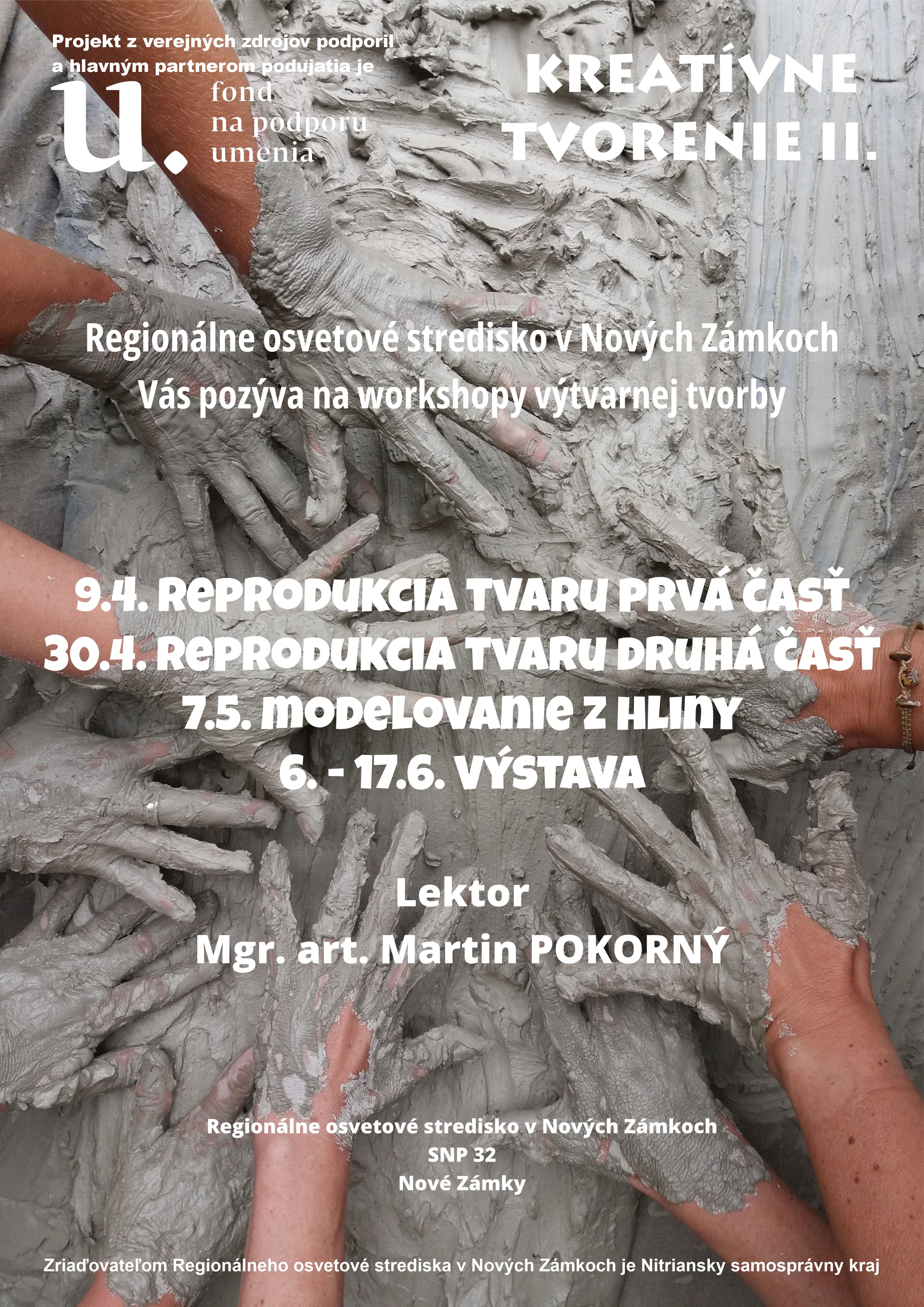 Reprodukcia tvaru – workshopy pre výtvarníkov (sochárov) - otisk tvaru, vytvorenie formy a následné vyrobenie sadrového odliatku z formy, ukončené výstavou. Modelovanie z hliny - workshop zameraný pre rozvoj výtvarnej (sochárskej) tvorivosti (zátišie, busta a iné), zdokonalenie motoriky rúk a priestorového myslenia pri formovaní diela z hliny.