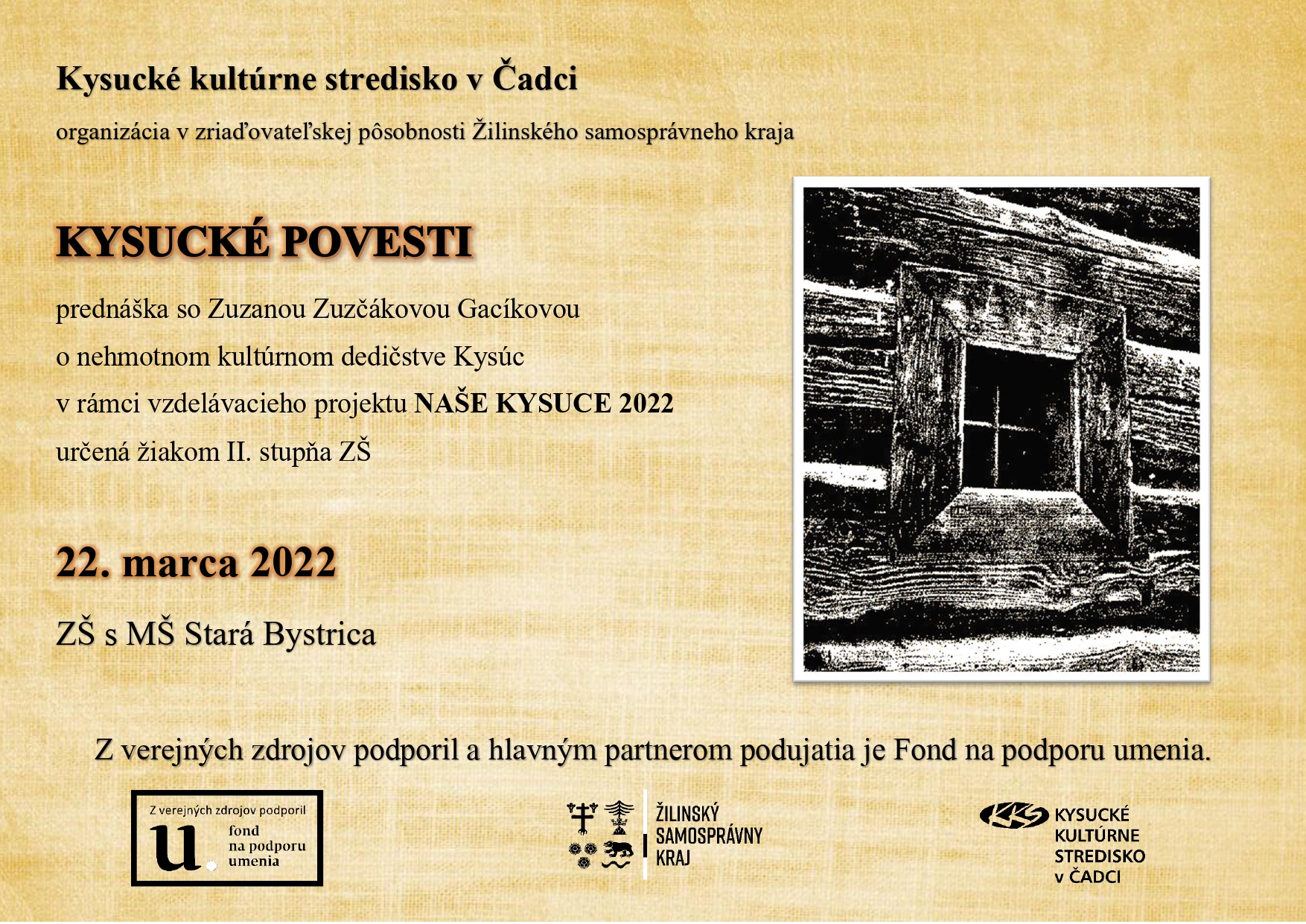 Povesti sú súčasťou nehmotného kultúrneho dedičstva. O tých kysuckých viac žiakom II. stupňa v ZŠ s MŠ Stará Bystrica porozpráva Mgr. Zuzana Zuzčáková Gacíková, PhD. počas prednášok 22. marca.