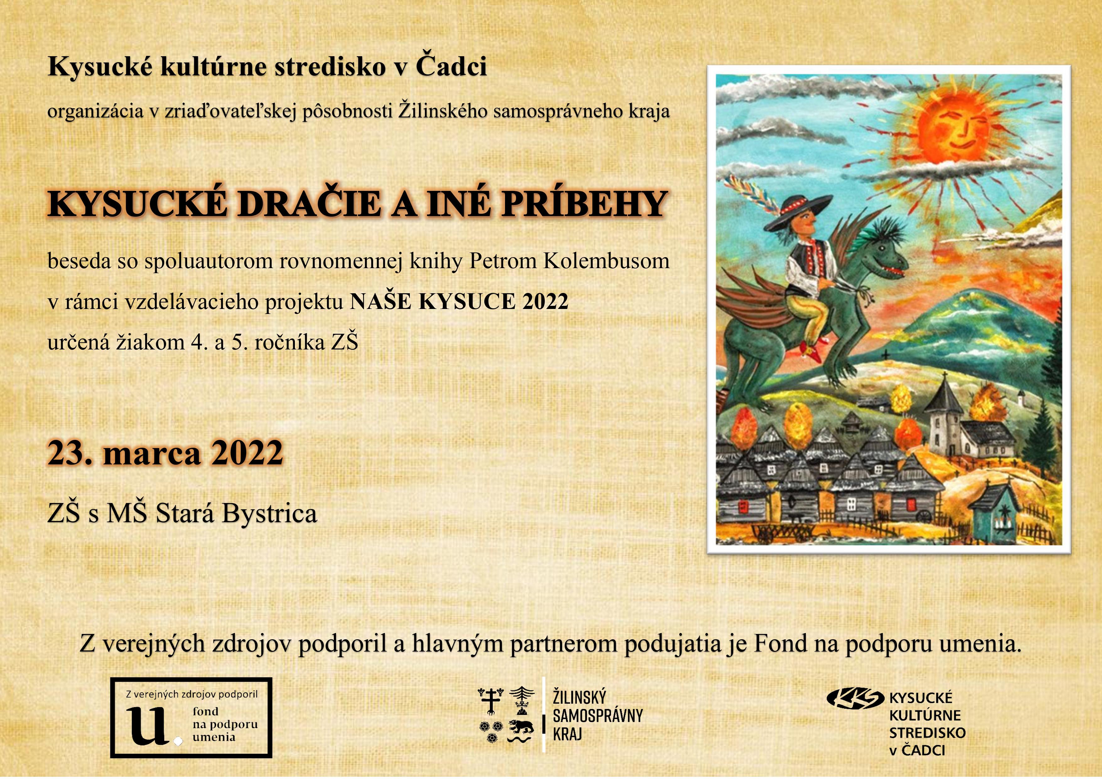 Žiaci 4. ročníka v ZŠ s MŠ Stará Bystrica sa môžu tešiť na zaujímavú besedu so spoluautorom knihy Kysucké dračie a iné príbehy Petrom Kolembusom.