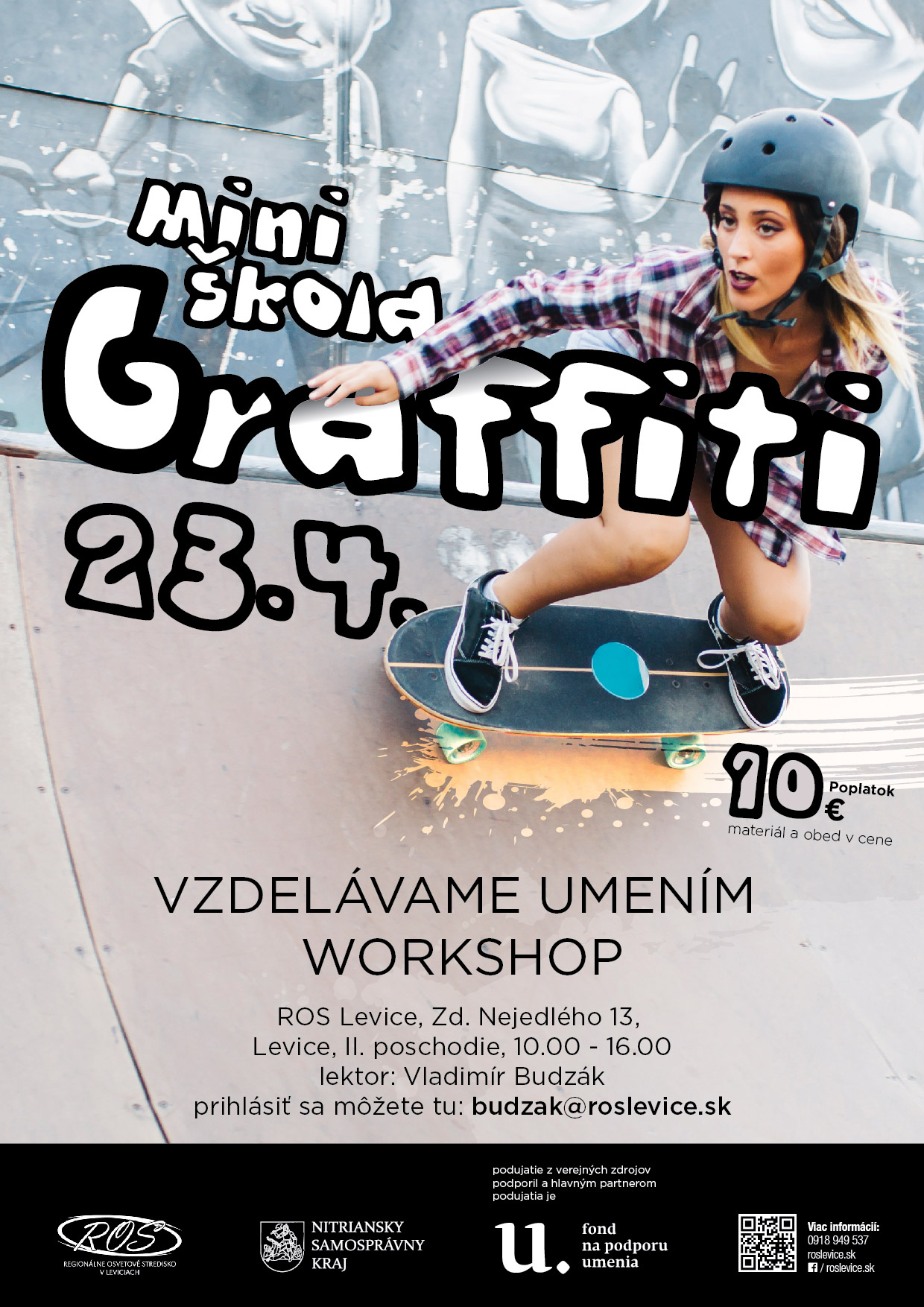 Worskhop zameraný na priblíženie graffiti umenia a umenia ulice, ale aj maľby tzv. muralu. Cieľom je vedieť niečo o histórií, súčasnosti, pravidlách, vecí používaných pri graffitoch. Účastníci si prejdú celým vývojom od vymyslenia si vlastného graffiti mena ( prípadne kresby – tzv. charakteru), skici na papieri, oboznámenie sa s technikou sprejovania na stenu a použitia rôznych nástavcov na sprej – trysky, až po výslednú maľbu na legálnu stenu.