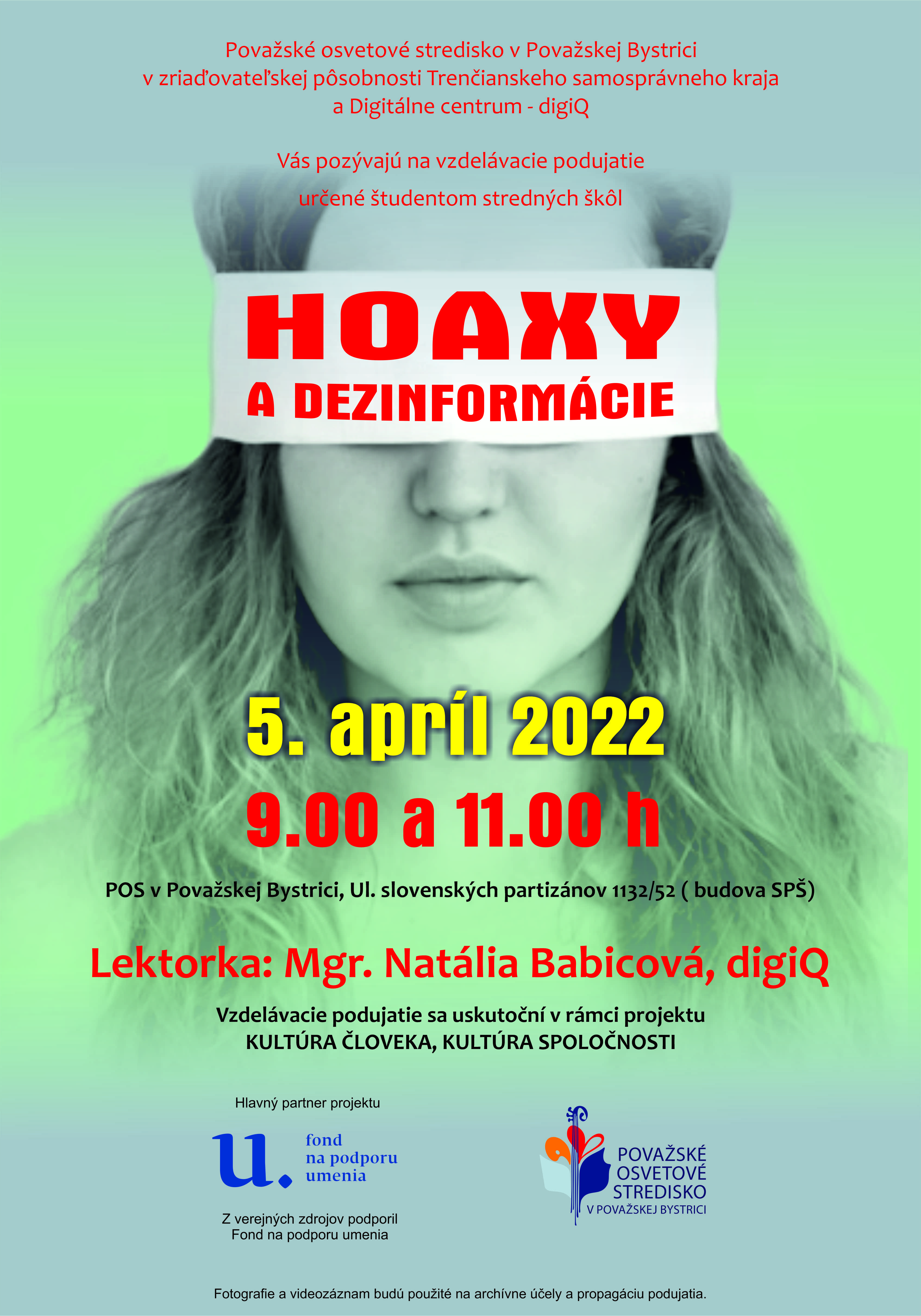 HOAXY A DEZINFORMÁCIE - vzdelávacie podujatie určené študentom strednej školy. Považské osvetové stredisko v Považskej Bystrici pripravilo prednášku na tému Hoaxy a dezinformácie, nakoľko je téma veľmi aktuálna a je potrebné o nej s mladými ľuďmi hovoriť. Práve tí dennodenne vyhľadávajú na internete rozličné informácie z rôznych kútov sveta.