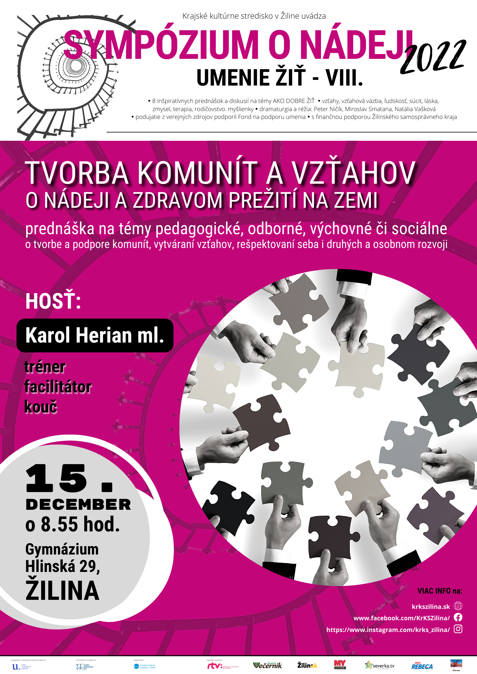 SYMPÓZIUM O NÁDEJI 2022 – UMENIE ŽIŤ VIII. - TVORBA KOMUNÍT A VZŤAHOV s podtitulom O NÁDEJI A ZDRAVOM PREŽITÍ NA ZEMI sa týka pedagogických, odborných výchovných či sociálnych tém.