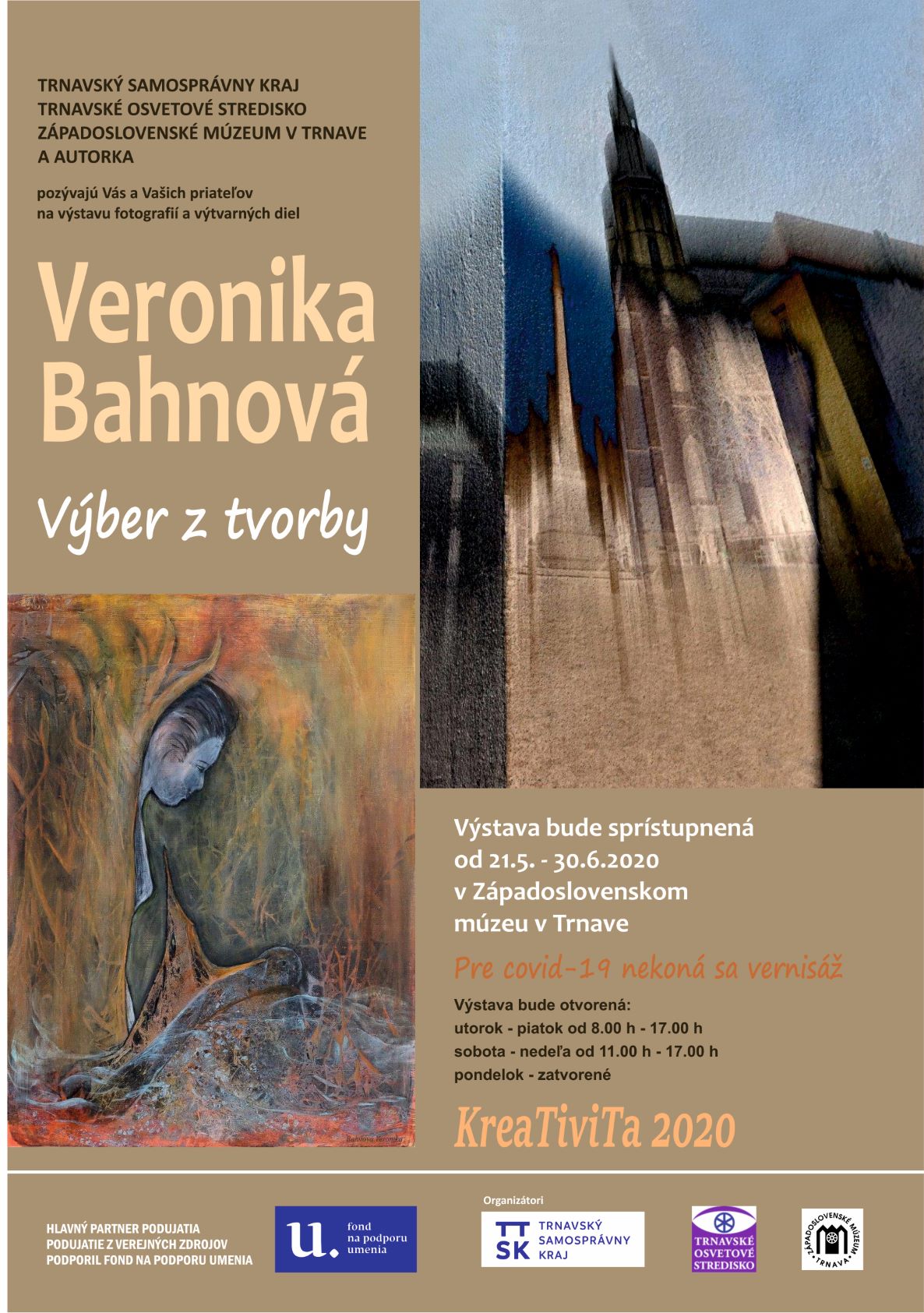 Výstava fotografií a výtvarných diel Veroniky Bahnovej – výber z tvorby je v poradí treťou výstavou, ktorú realizuje Trnavské osvetové stredisko v rámci projektu KreaTiviTa 2020. Rozsiahlu autorskú výstavu organizujeme pri príležitosti významného životného jubilea autorky v Západoslovenskom múzeu v Trnave.