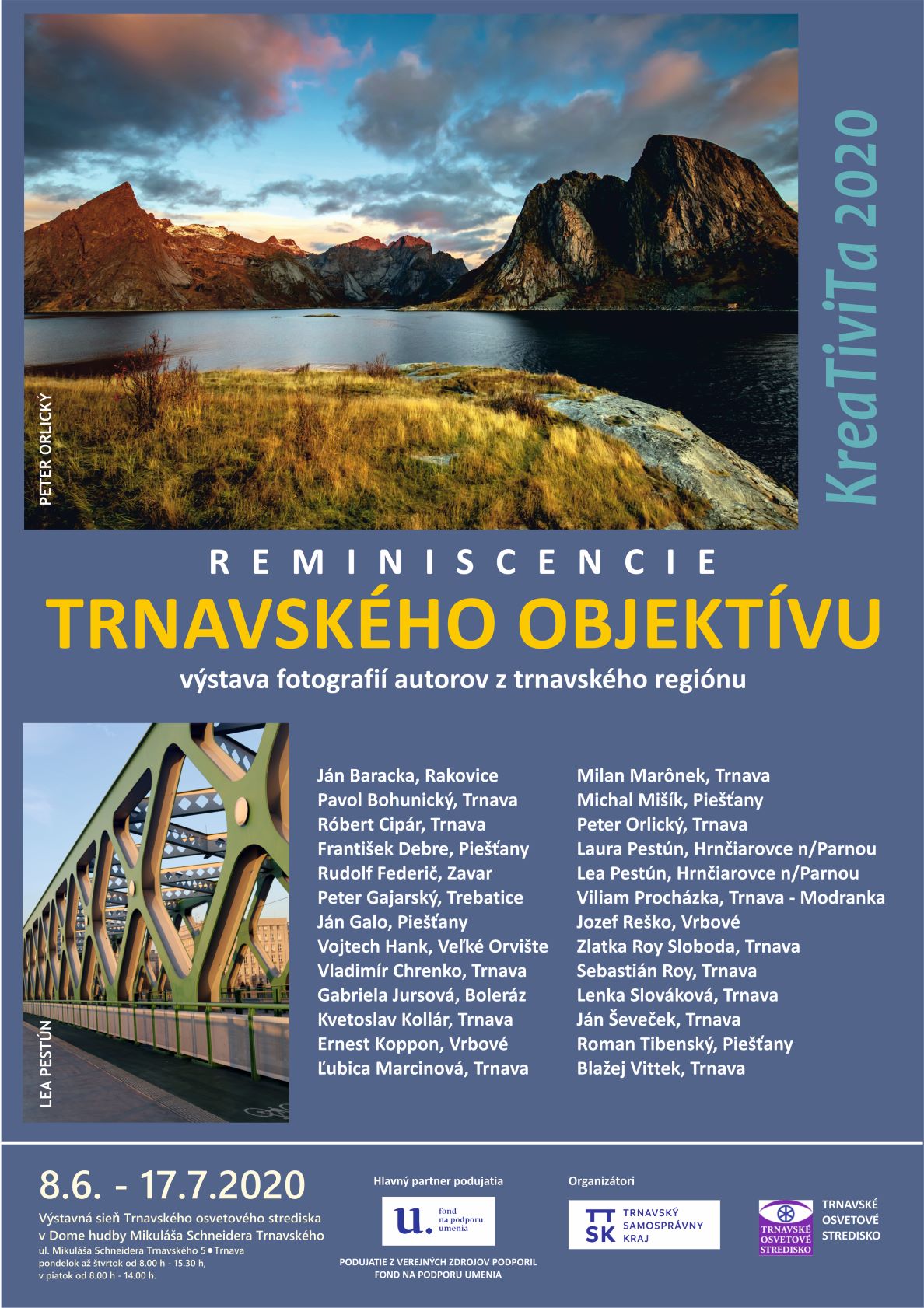 Kolektívna výstava fotografií „Reminiscencie Trnavského objektívu“ je v poradí štvrtou výstavou, ktorá sa realizuje v rámci projektu KreaTiviTa 2020. Výstava bude sprístupnená v priestoroch Domu hudby M. Sch. Trnavského v Trnave.