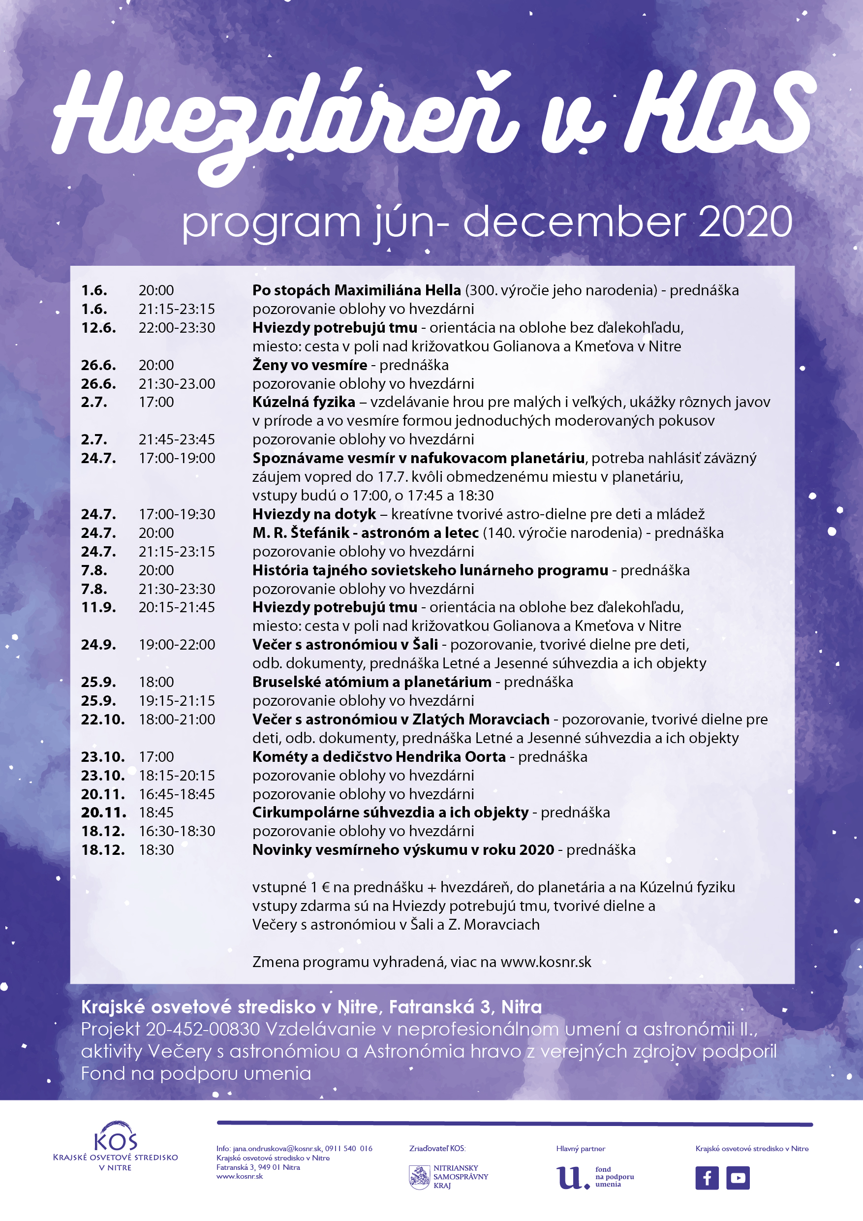 Prednáška Petra Poliaka: "Po stopách Maximiliána Hella" sa začne o 20:00 a v čase 21:15 – 23:15 ponúkame pozorovanie oblohy vo hvezdárni, samozrejme s prihliadnutím na všetky v tom čase platné hygienické nariadenia.