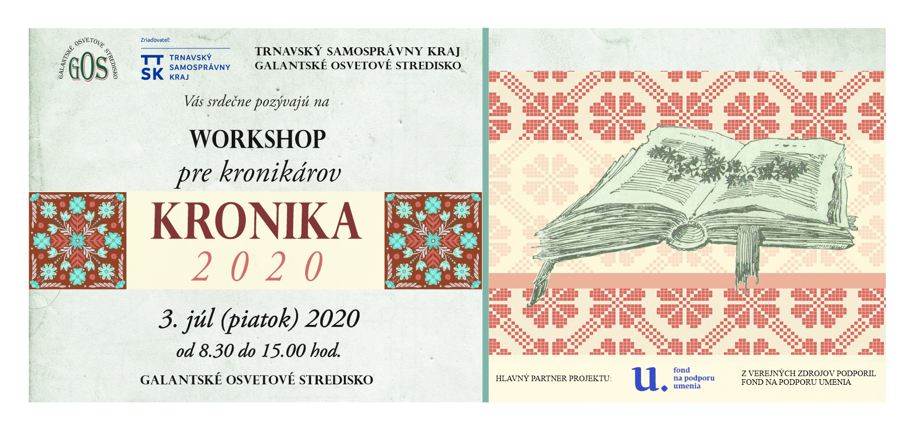 Pre úspešné naplnenie poslania kronikára je potrebné vytvárať priestor na zvyšovanie kompetencie tvorcov kroník, ku ktorému prispievajú aj realizované workshopy v Galante pre začínajúcich ako aj pokročilejších kronikárov. Prvý z dvojice workshopov pre kronikárov uskutoční Galantské osvetové stredisko v piatok dňa 3. júla 2020. Účastníci kronikárskych workshopov si aktívne rozširujú svoje zručnosti, čím zdarne napĺňajú kronikárske poslanie v rámci svojich pôsobísk.