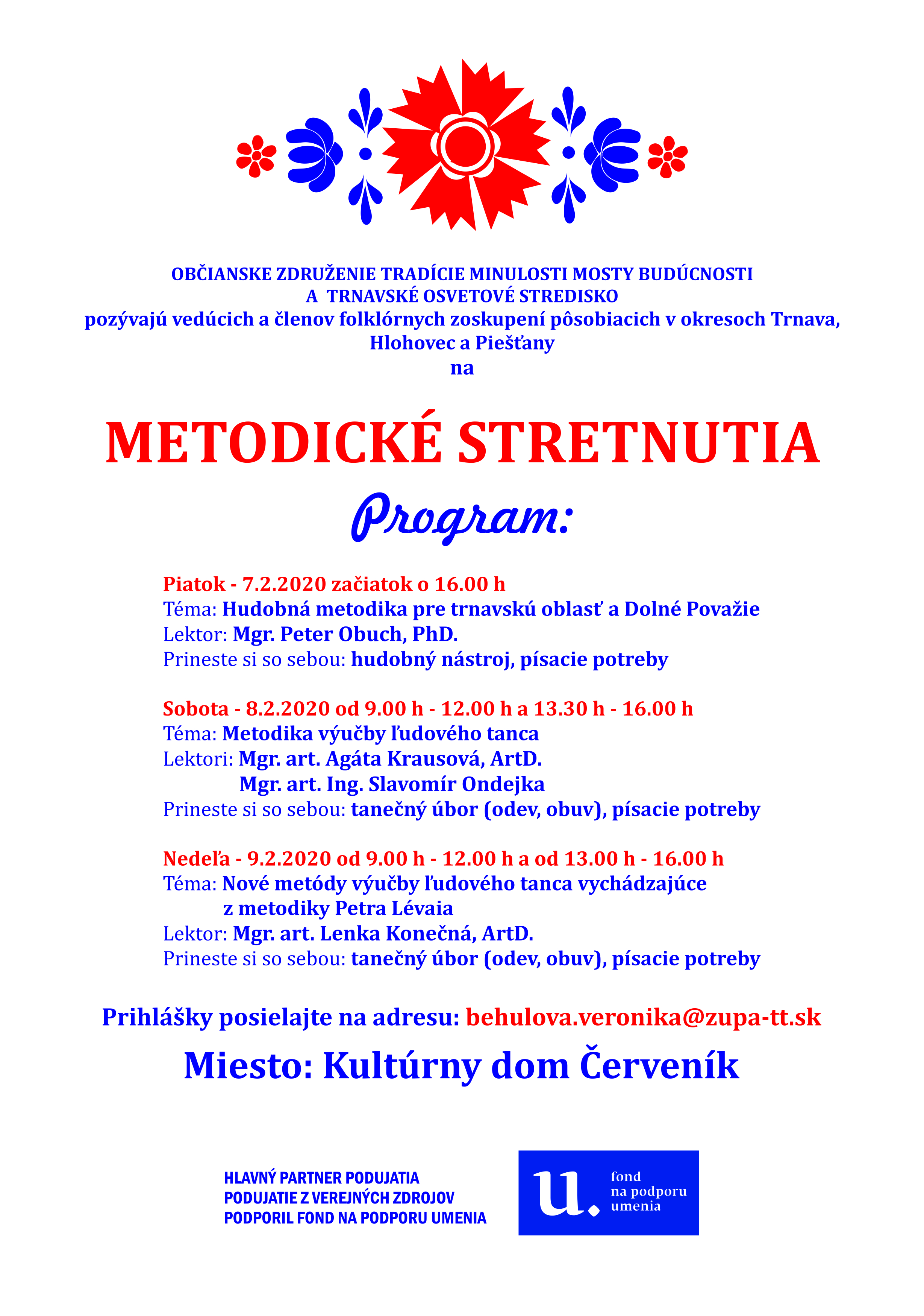 Cyklus vzdelávacích aktivít určených pre vedúcich, asistentov a lektorov folklórnych kolektívov , interpretov, pedagógov ZŠ a ZUŠ, pre všetkých záujemcov o túto oblasť.