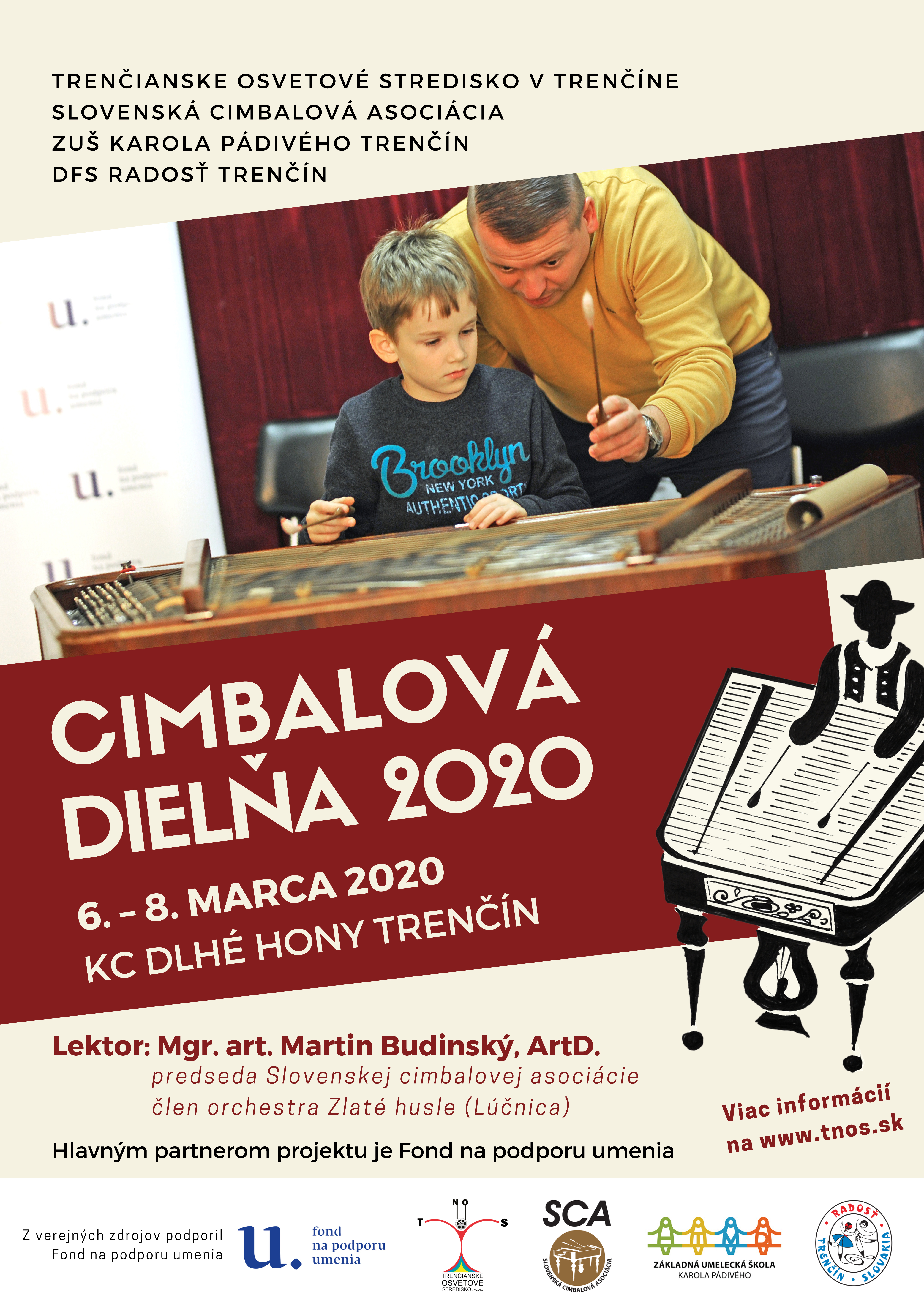 Cimbalová dielňa 2020 je zameraná na vzdelávanie detských a mládežníckych cimbalistov, ktorí pôsobia vo folklórnych súboroch v Trenčianskom kraji a súčasne jedinečnou príležitosťou pre získanie nových zručností v oblasti folklórnej cimbalovej hry.