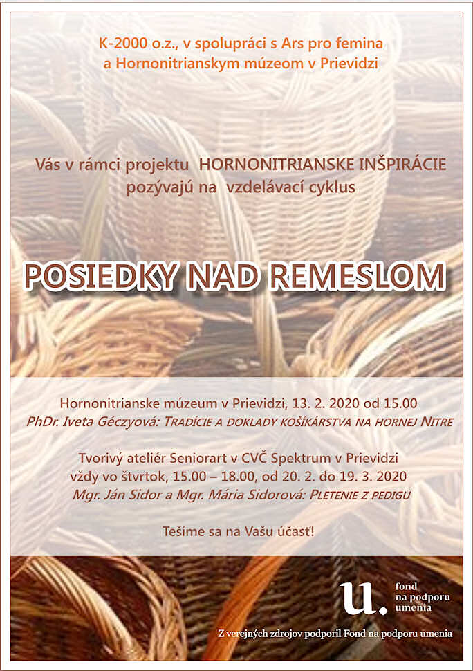 Súhrn aktivít zameraných na priblíženie osobností a fenoménov tradičnej kultúry hornej Nitry súčasníkom. Súčasťou projektu je výchovný koncert s komentovaným uvádzaním ľudových pastorel, kolied a chrámových piesní zo zbierky Gašpara Drozda - POCTA GAŠPAROVI DROZDOVI, vzdelávací program o vianočnom zvykosloví, tradičných jedlách a rodinných rituáloch Vianoc - HORNONITRIANSKE DOBROTY a POSIEDKY NAD REMESLOM - súhrn troch vzdelávacích kurzov zameraných na tradičné remeslá hornej Nitry.