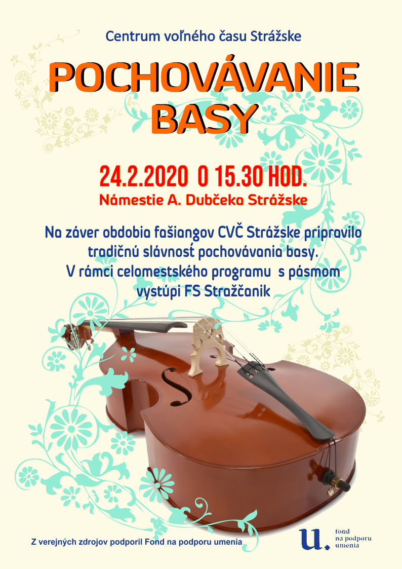 V rámci projektu Vo voľnom čase s folklórnom v srdci Centrum voľného času Strážske pripravuje na záver fašiangového obdobia tradičnú slávnosť POCHOVÁVANIE BASY. V rámci celomestského programu s pásmom vystúpi FS Stražčanik.